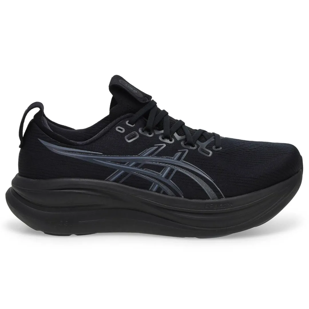The GEL-NIMBUS 28 Performance Sneaker from Asics, is one of the most comfortable styles in the Asics running shoe range. Approximately 25g lighter than the previous version, this shoe continues to offer excellent cushioning to make running longer distances feel smoother. The midsole features a combination of FF BLAST PLUS cushioning and PureGEL technology. These components help create a lightweight and soft cushioning experience that feels like you’re landing on clouds.