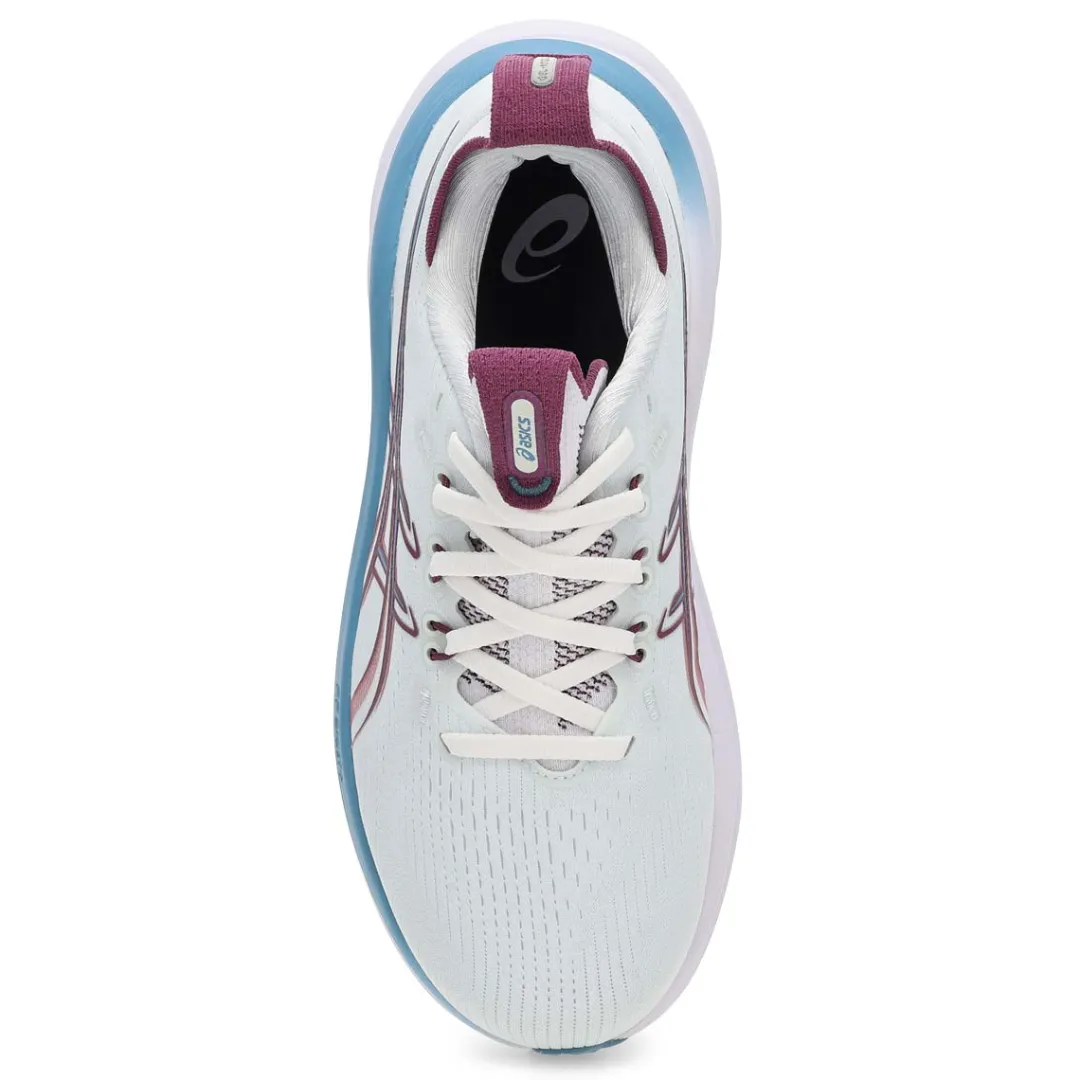 The GEL-NIMBUS 28 Performance Sneaker from Asics, is one of the most comfortable styles in The Asics running shoe range. Approximately 25g lighter than the previous version, this shoe continues to offer excellent cushioning to make running longer distances feel smoother. The midsole features a combination of FF BLAST PLUS cushioning and PureGEL technology. These components help create a lightweight and soft cushioning experience that feels like you’re landing on clouds.