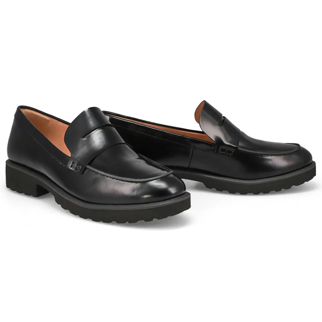 With keeping up with the trends without compromising on comfort, the Geneva black casual loafer from Cole Hann is a must-have on your list this season. The classic penny loafer gets a modern upgrade with a trend-forward lugged sole. Easy slip-on styling thats perfect for dressing up or wearing more casually.