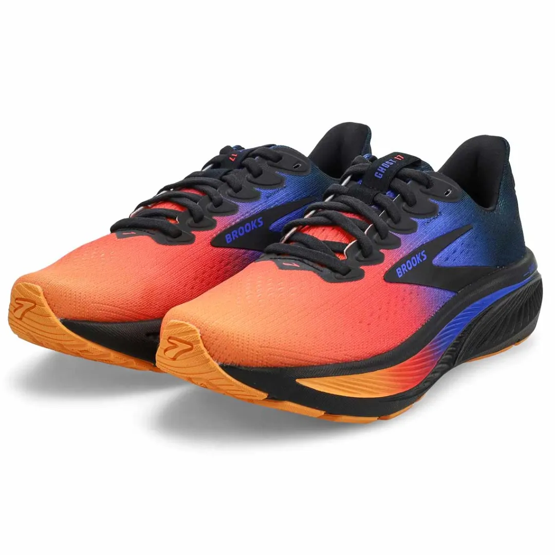 Meet the next generation , step into the Ghost 17 Performance Runner from Brooks. Release a rush of positive, feel-good energy through its added nitro-infused cushioning that delivers a soft comfort underfoot. Engineered air mesh upper provides breathability and structure, plus a redesigned kickback collar. Soft Landings: Decoupled crash pad and deep heel groove deform to absorb energy at impact for soft landings. Pronation: Designed for neutral runners, providing even distribution from the front of the foot. Drop: 10 mm.