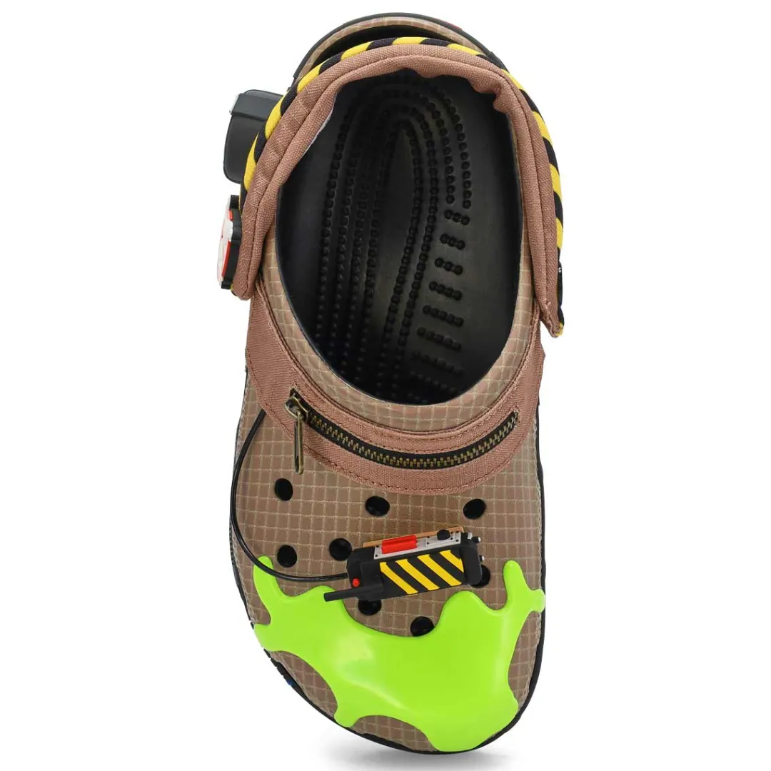 The P.K.E. meter is off the charts! Suit up and save your city from destruction in the Ghostbusters Classic Clog from Crocs. Each pair is outfitted like the iconic flight suit and equipped with tools to take on the paranormal. A Ghost Trap Jibbitz charm and Proton Pack with touch-activated power-up sound are included on the right shoe, and Slimer sits on the left, waiting to be captured. Glow in the dark ectoplasm oozes over the toes and interchangeable name tags come with each pair so you can choose which Ghostbuster you want to be that day.