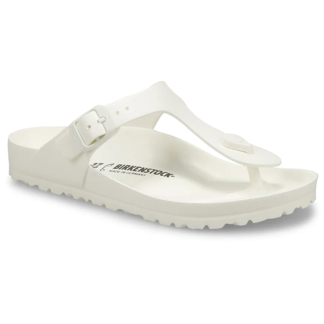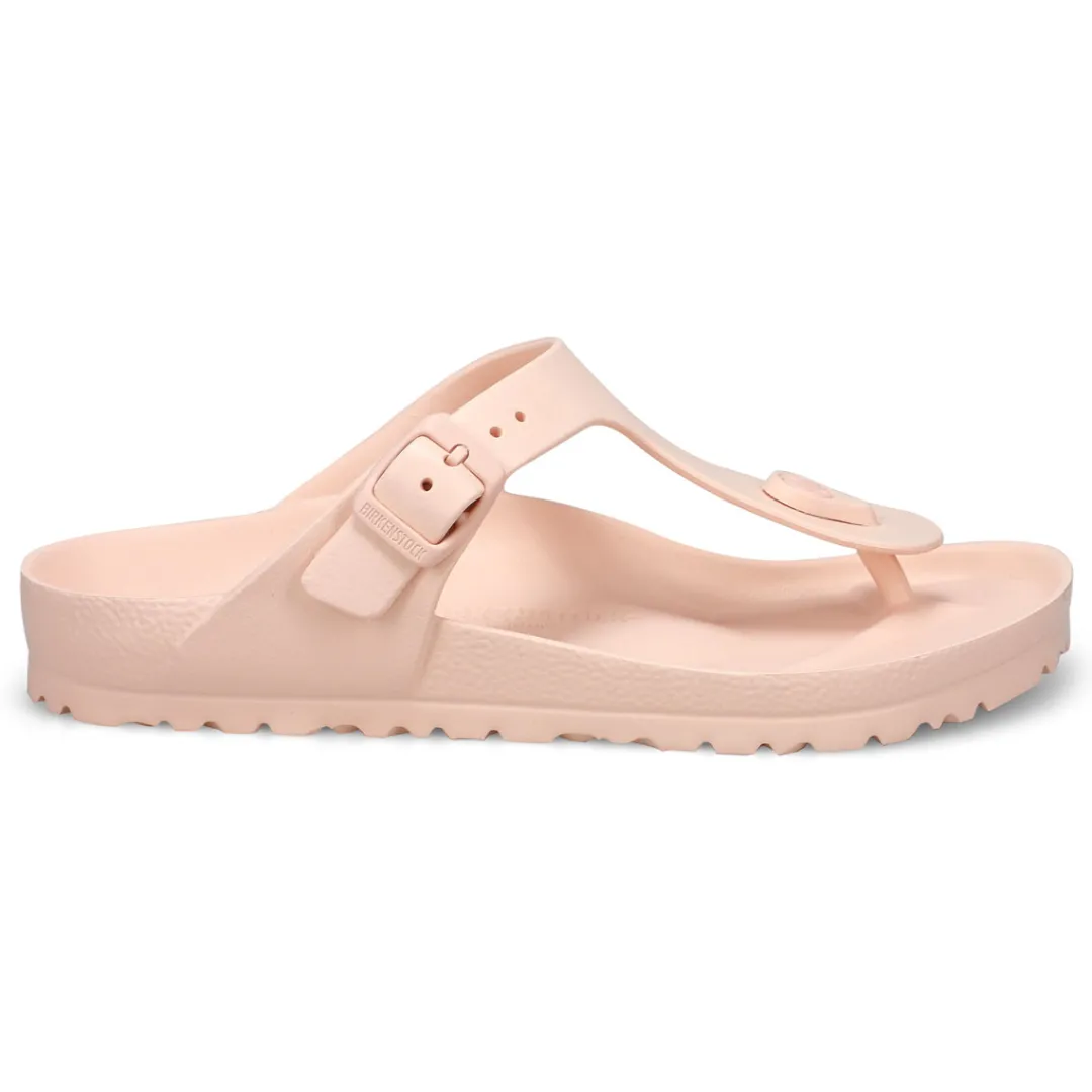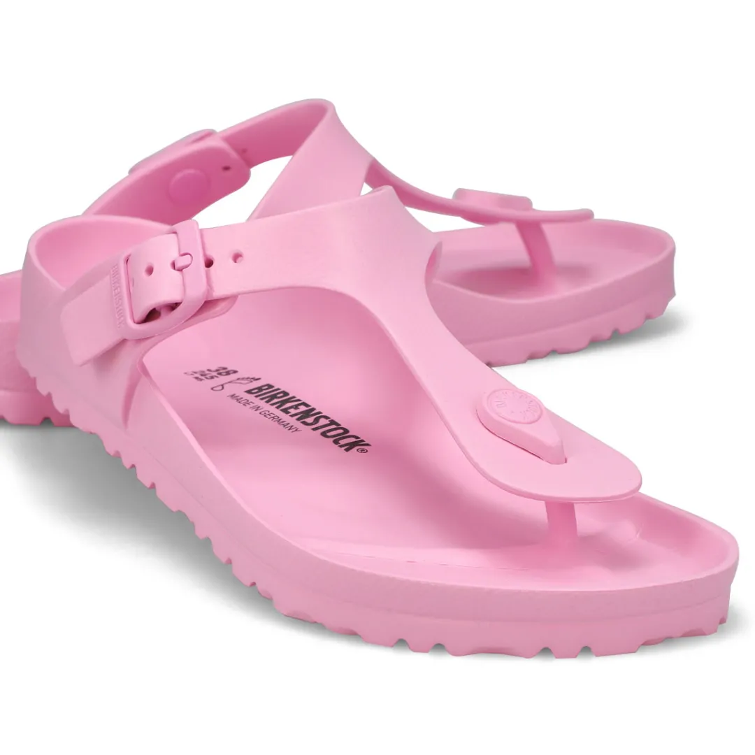 The Gizeh EVA fondant pink thong upper from Birkenstock with a cushioned footbed provides excellent arch support. Your days will be filled with walking comfort, without compromising good looks and style. This Birkenstock sandal is a genuine classic, emphasizing the handcrafted and natural look of stylish sandals. A comfort legend and a fashion staple.