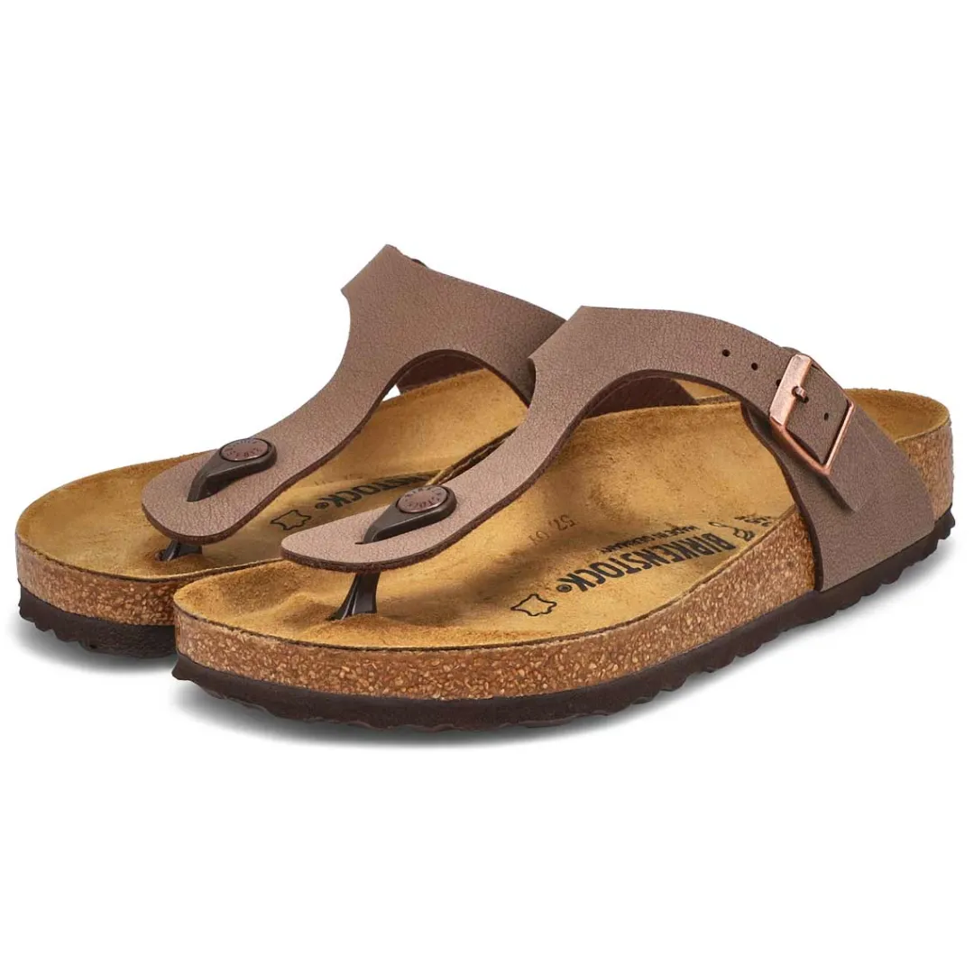 The Gizeh birko-flor sand patent thong sandal from Birkenstock with a cushioned footbed provides excellent arch support. Durable EVA outsole, cork footbed molds to each individual foot to provide a custom fit. This Birkenstock sandal is a genuine classic, emphasizing the handcrafted and natural look of stylish sandals. A comfort legend and a fashion staple.