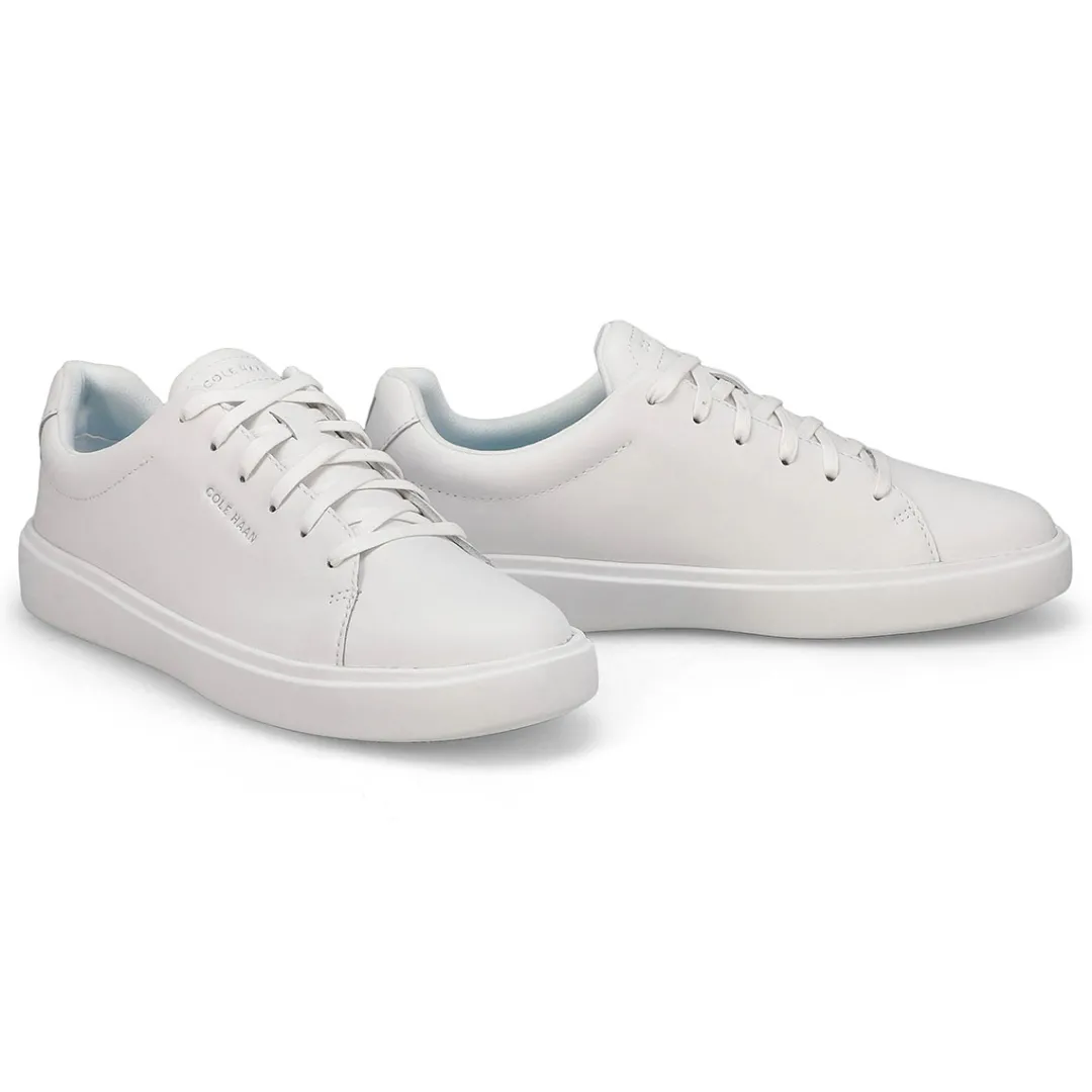A classic court sneaker deserves a place in every wardrobe. Introducing The Grand Crosscourt Traveler White/Bluebell/White Casual Sneaker from Cole Haan. Effortlessly versatile leather for every occasion. Luxuriously comfortable footbed with a textile cover softly pads each step. Lightweight, tractioned EVA unit bottom lets you go further with each step while rubber pods strategically loated on the outsole for superior traction.