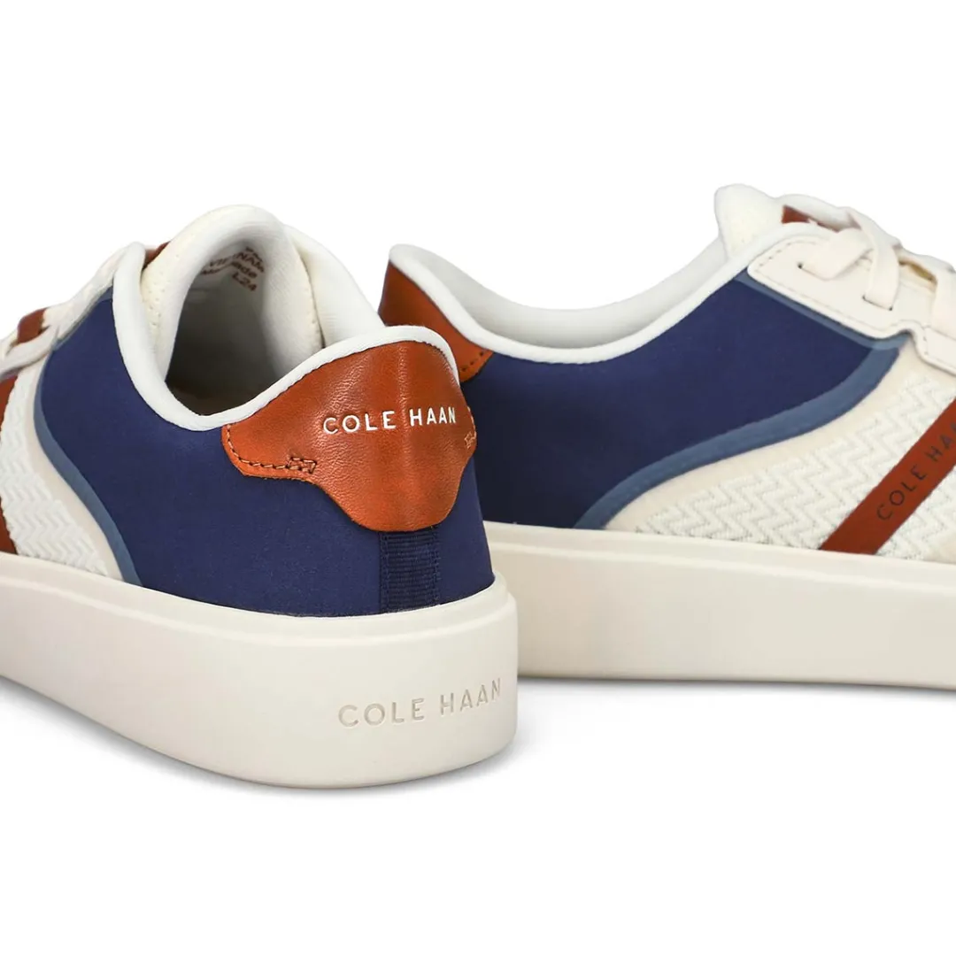 Experience old-school style with modern comfort in the Grand Crosscourt Winner Ivory/Navy Blazer/Dark Sequoia/Natural Tan Sneaker from Cole Haan .From eye-catching zig-zag patterns to sleek solid overlays, this lace-up sneaker delivers retro court style wherever you roam. Built for comfort as much as looks, it features a padded footbed that cushions every step, keeping you stylish and supported all day long.