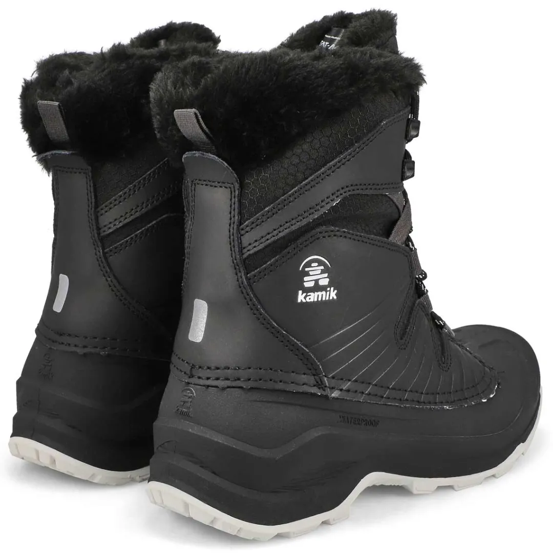 Step into the Iceland F winter boot from Kamik and embrace chilly adventures. Featuring a moisture-wicking faux fur lining and thermal insulation, these indispensable boots will ensure your feet stay warm as you trek through deep snow. Waterproof genuine leather with seam-sealed construction will keep your feet dry no matter the forecast. A rugged outsole designed with special channels gives you superior traction and stability while navigating blizzardy trails.