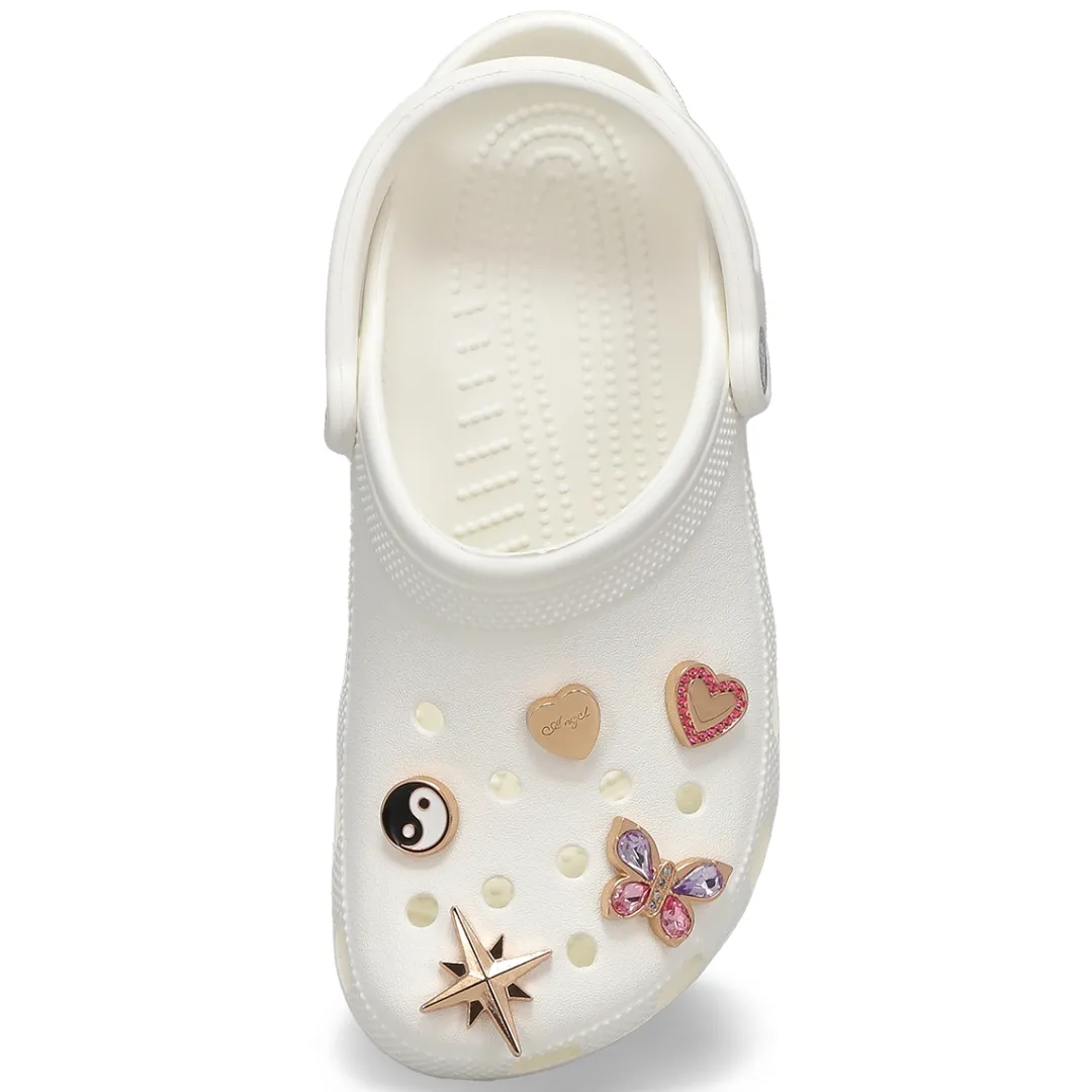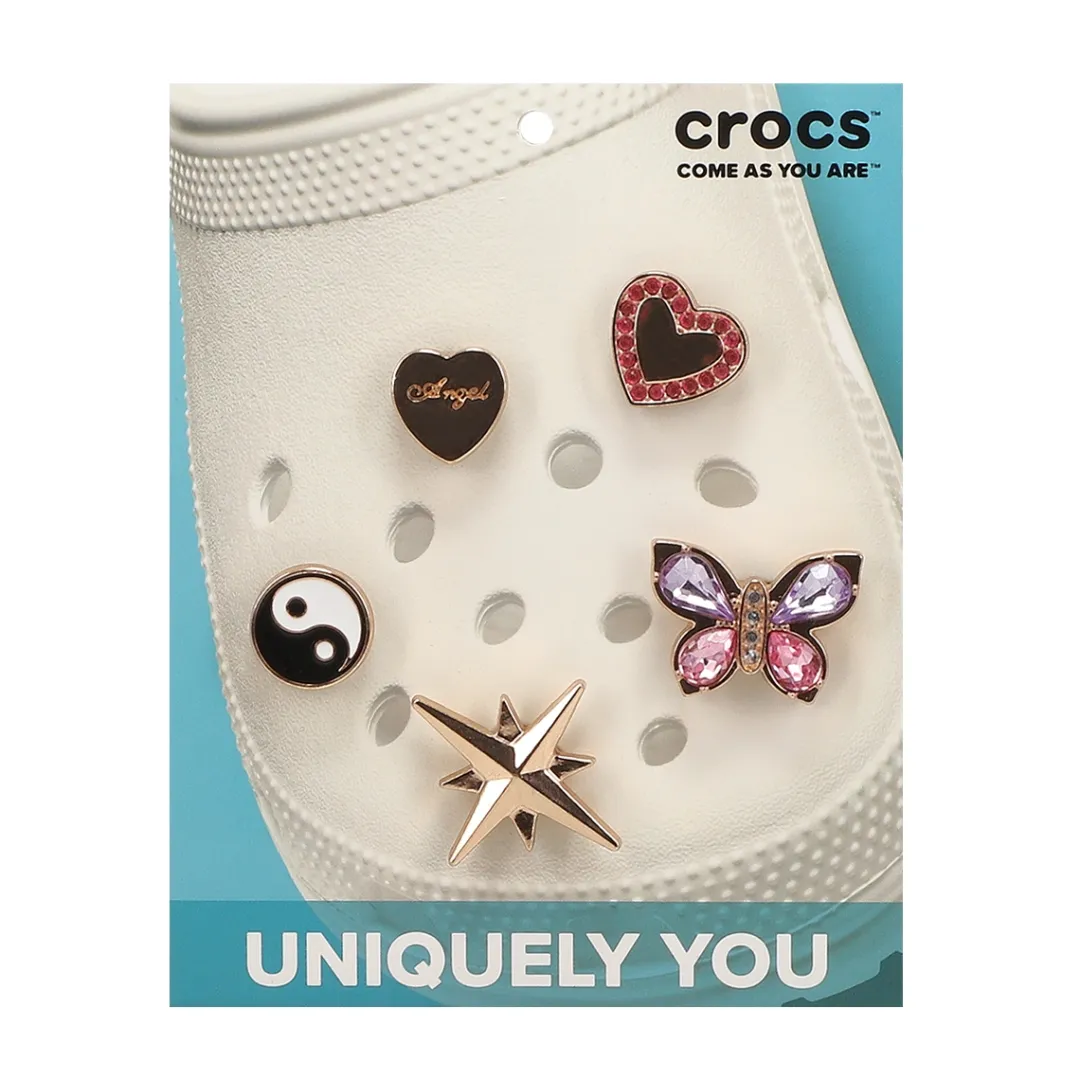 Pop some personality into your Crocs with the Jibbitz Pretty In Gold 5 Pack Jibbitz charm from Crocs. It’s the perfect addition to your favorite pairs of clogs, slides, and more. Not a toy. Not intended for children under 3 years of age. Authentic Crocs jibbitz charms. Designed specficially by Crocs for Crocs!