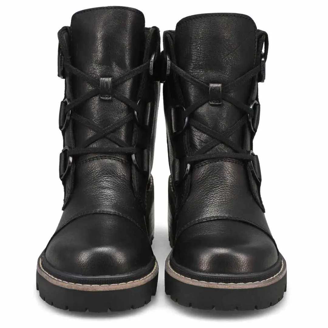 A classic-inspired style gets a lift with a high-traction heel for heading downtown or out of town. Waterproof materials help keep moisture out while D-ring hardware and crafted welt construction make the style more sophisticated. Full grain leather and suede. Canvas and synthetic lining. Removable EVA footbed with canvas topcover. Rubber welt construction with stitch detail.