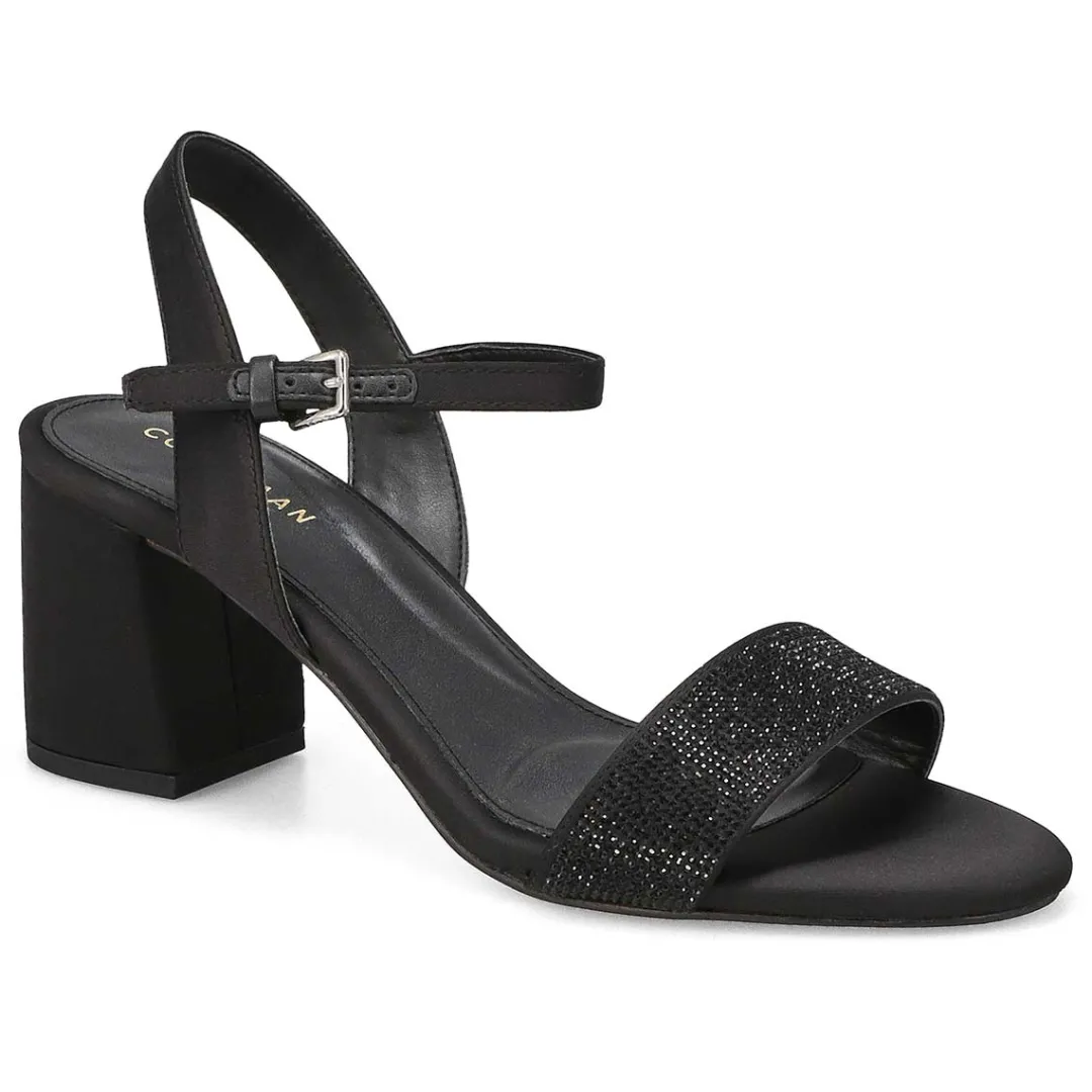 Polish off dressy looks with the Josie Block Heel black satin /crystal sandal from Cole Haan. Featuring premium leather uppers and comfortable block heel, this classic style is finished with an adjustable ankle strap for a secure fit. Featuring Cole Haan’s luxurious GRANDFØAM cushioning technology for an all day absolute cushioning experience.