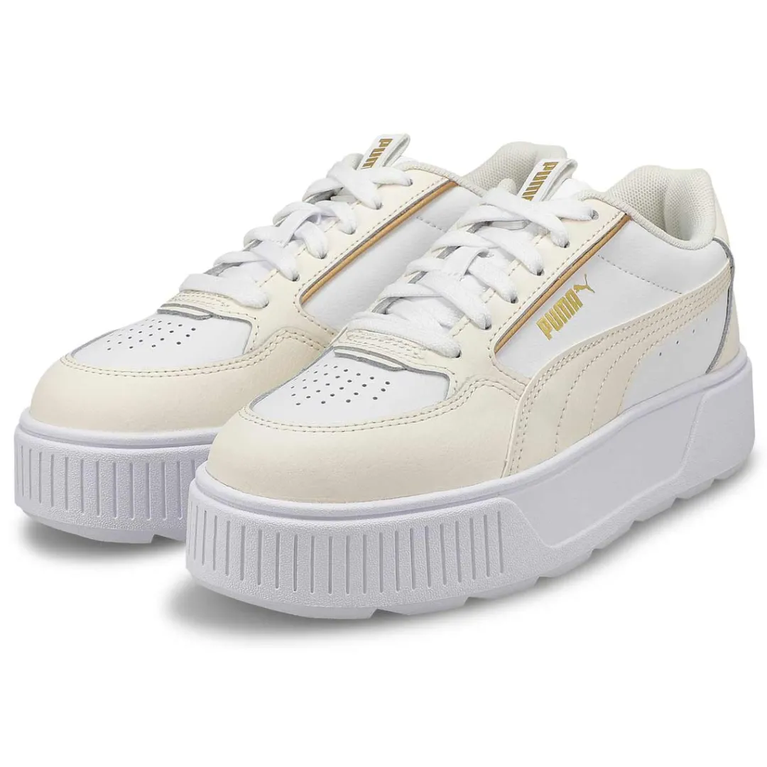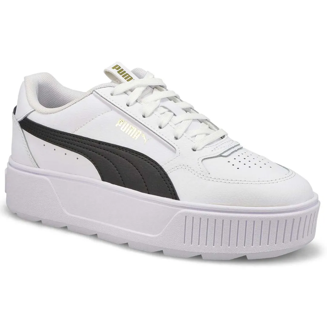 Step out in style with the Karmen Rebelle white/ gold platform sneaker from Puma. A bold silhouette combines with a platform profile for sneakers that channel unmistakably retro vibes, creating a classic sporty look that pairs well with any outfit. Best of all, the SoftFoam+ sockliner provides underfoot comfort to keep you feeling supported every step of your day.