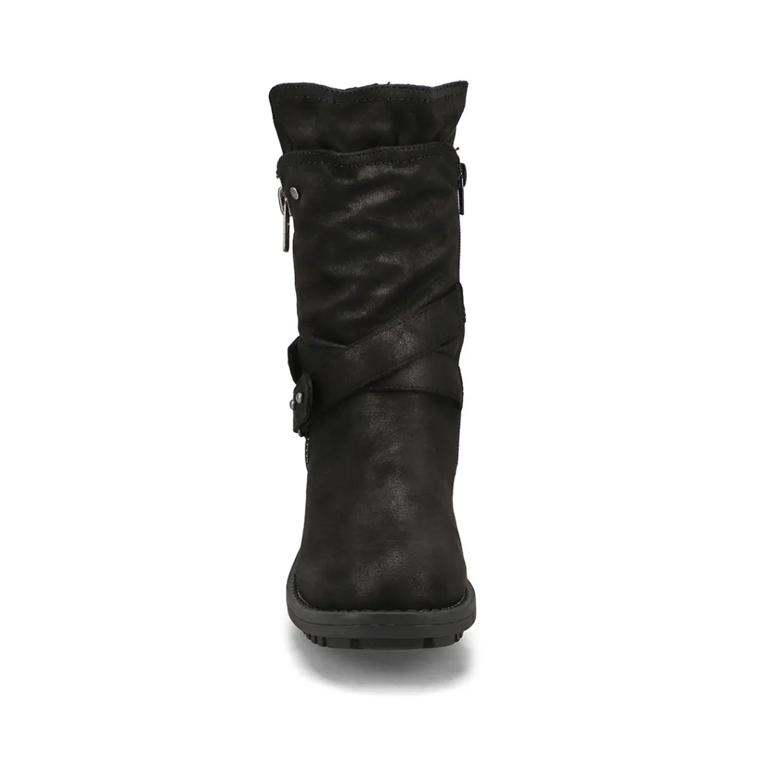 The Kassia Mid Calf black combat boot from SoftMoc is the perfect boot choice whether your outfit is demanding a dressed up look or weekend casual. Featuring PU leather upper. A lightly cushioned footbed with lining helps create all day comfort. The Kassia Mid Calf boot is designed with a durable TPR outsole.