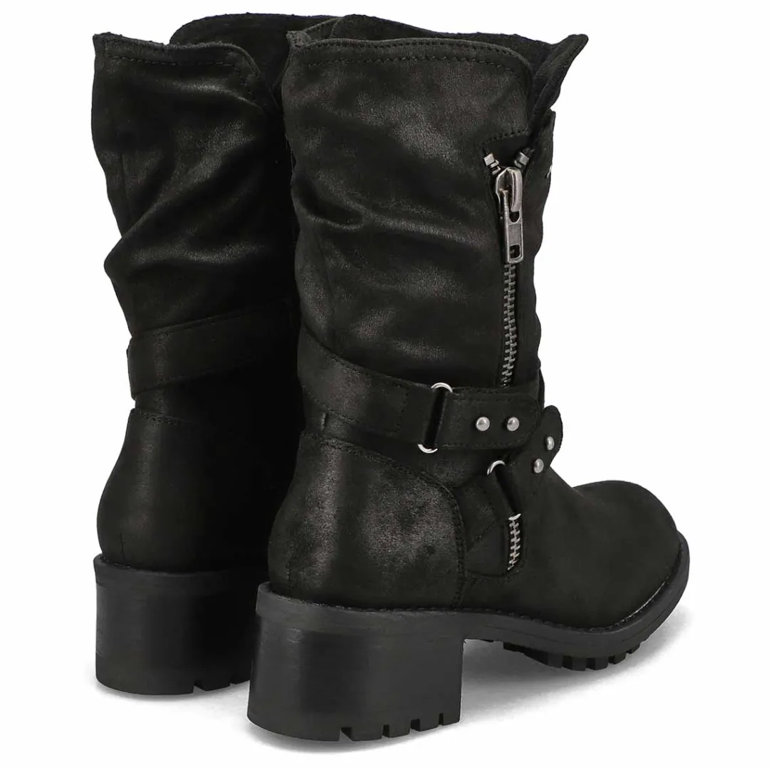 The Kassia Mid Calf wine combat boot from SoftMoc is the perfect boot choice whether your outfit is demanding a dressed up look or weekend casual. Featuring PU leather upper. A lightly cushioned footbed with lining helps create all day comfort. The Muse Riding boot is designed with a durable TPR outsole.