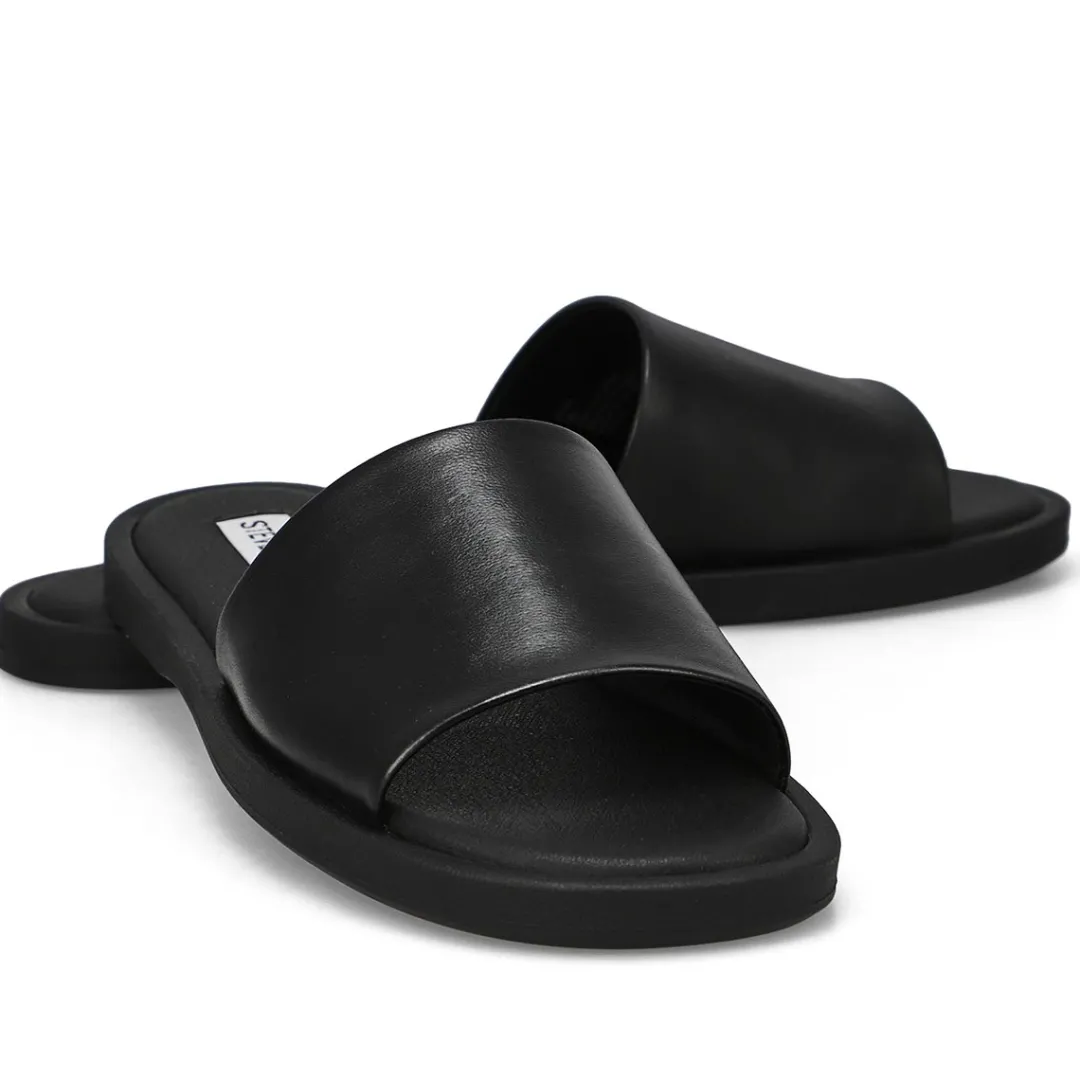 For versatility, style and comfort, Steve Madden has you covered with the Kora brown slide sandal. Features a genuine leather upper. Slip on construction for easy on /off. Padded footbed for all day comfort and a flexible rubber outsole for great durability. The Kora slide is a must have for your wardrobe this season!