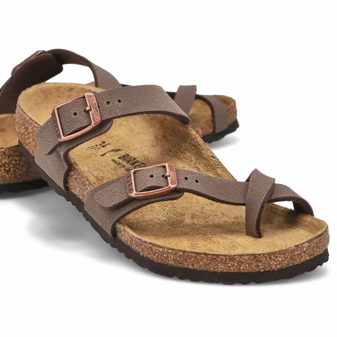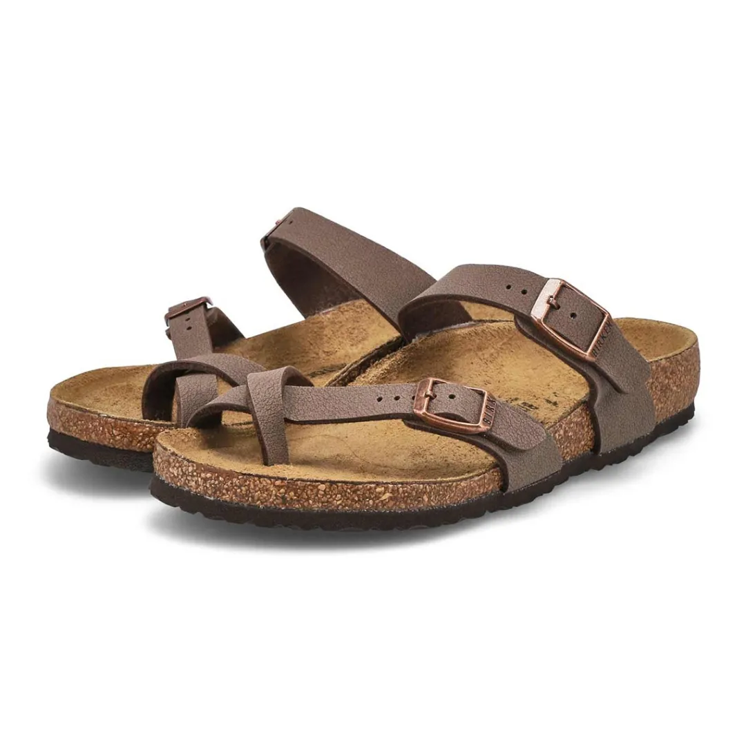 The Mayari from Birkenstock with a contoured cork footbed conforms to the shape of your foot and features pronounced arch support. Durable EVA outsole, cork footbed molds to each individual foot to provide a custom fit. This Birkenstock sandal is a genuine classic, emphasizing the handcrafted and natural look of stylish sandals. A comfort legend and a fashion staple.
