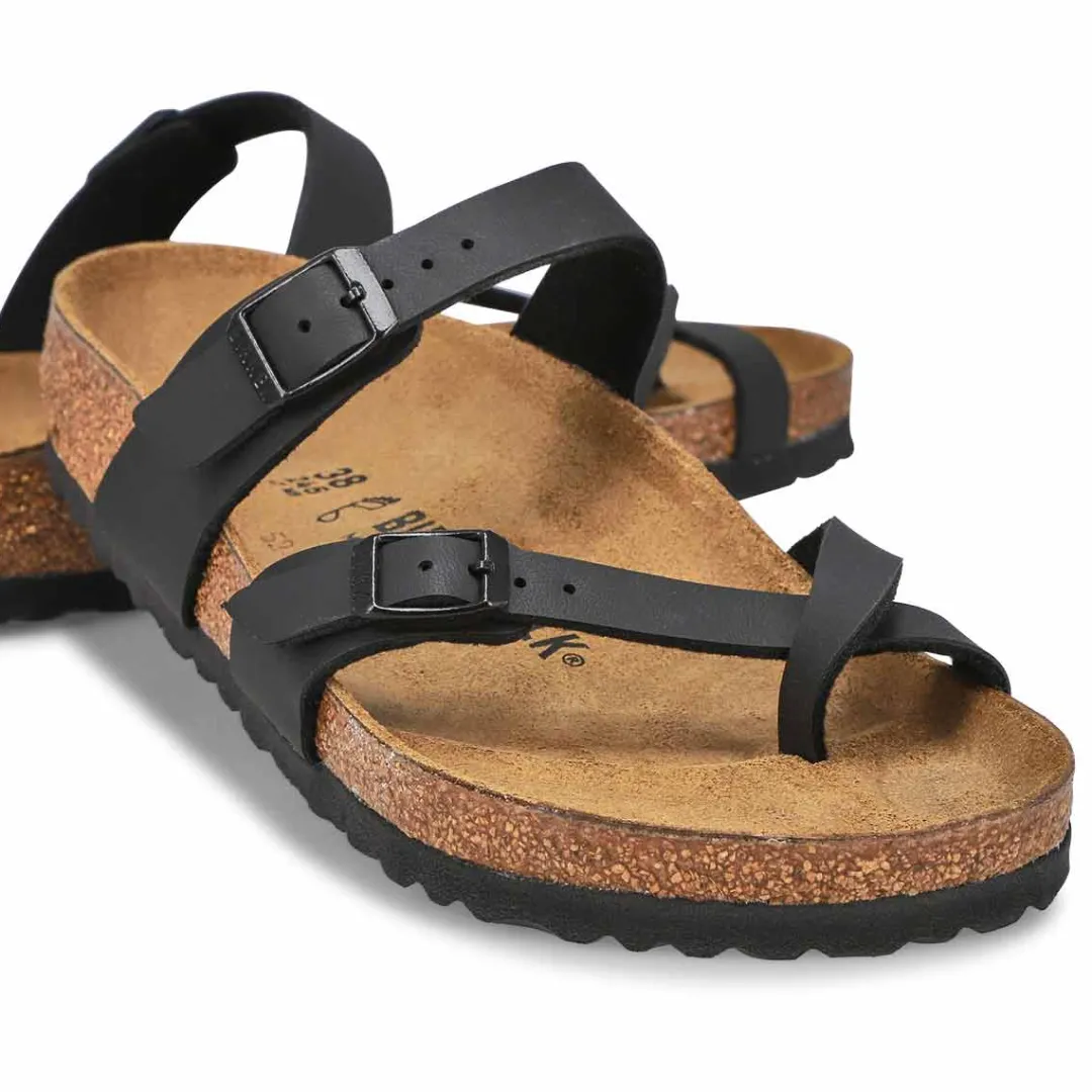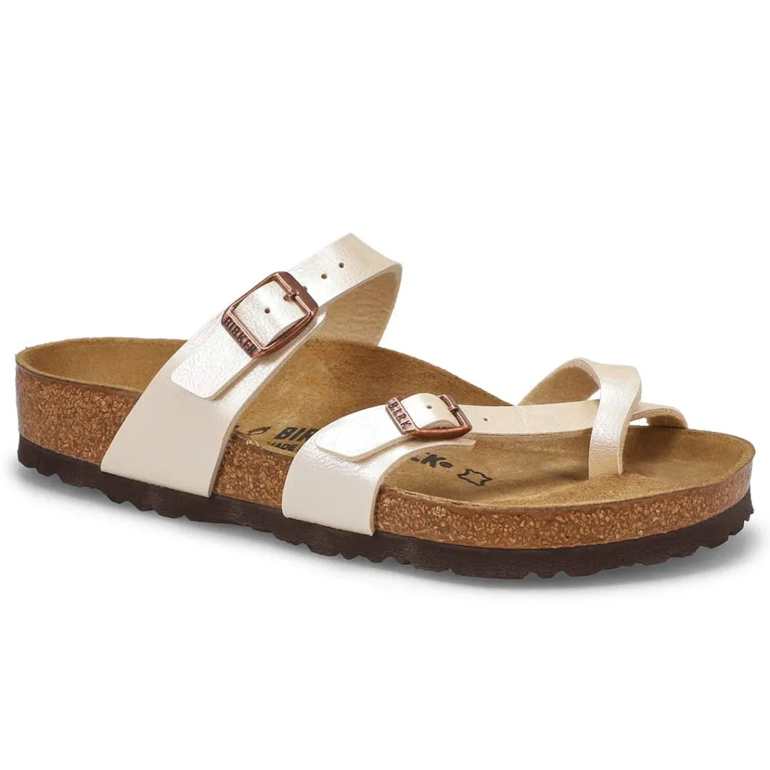The Mayari birko-flor stone toe sleeve sandal with an orthotic footbed provides excellent arch support. Durable EVA outsole, cork footbed molds to each individual foot to provide a custom fit. This Birkenstock sandal is a genuine classic, emphasizing the handcrafted and natural look of stylish sandals. A comfort legend and a fashion staple.