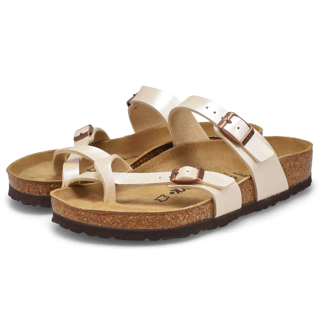 The Mayari birko-flor upper from Birkenstock with a contoured cork footbed conforms to the shape of your foot and features pronounced arch support. Durable EVA outsole, cork footbed molds to each individual foot to provide a custom fit. This Birkenstock sandal is a genuine classic, emphasizing the handcrafted and natural look of stylish sandals. A comfort legend and a fashion staple.