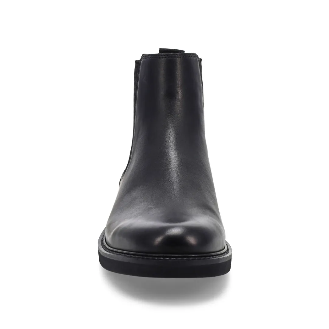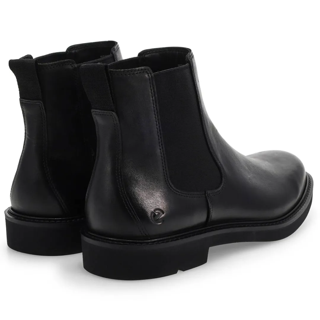 Meet the Metropole London black Chelsea Boot from Ecco, helping perfect your city stride. An upgrade to your dress casual repertoire that’s crafted with an extra bit of width and a supremely comfortable Fluidform sole to keep you in step all day. Crafted from premium Ecco leather. Classic elastic gore panel for easy on-and-off.