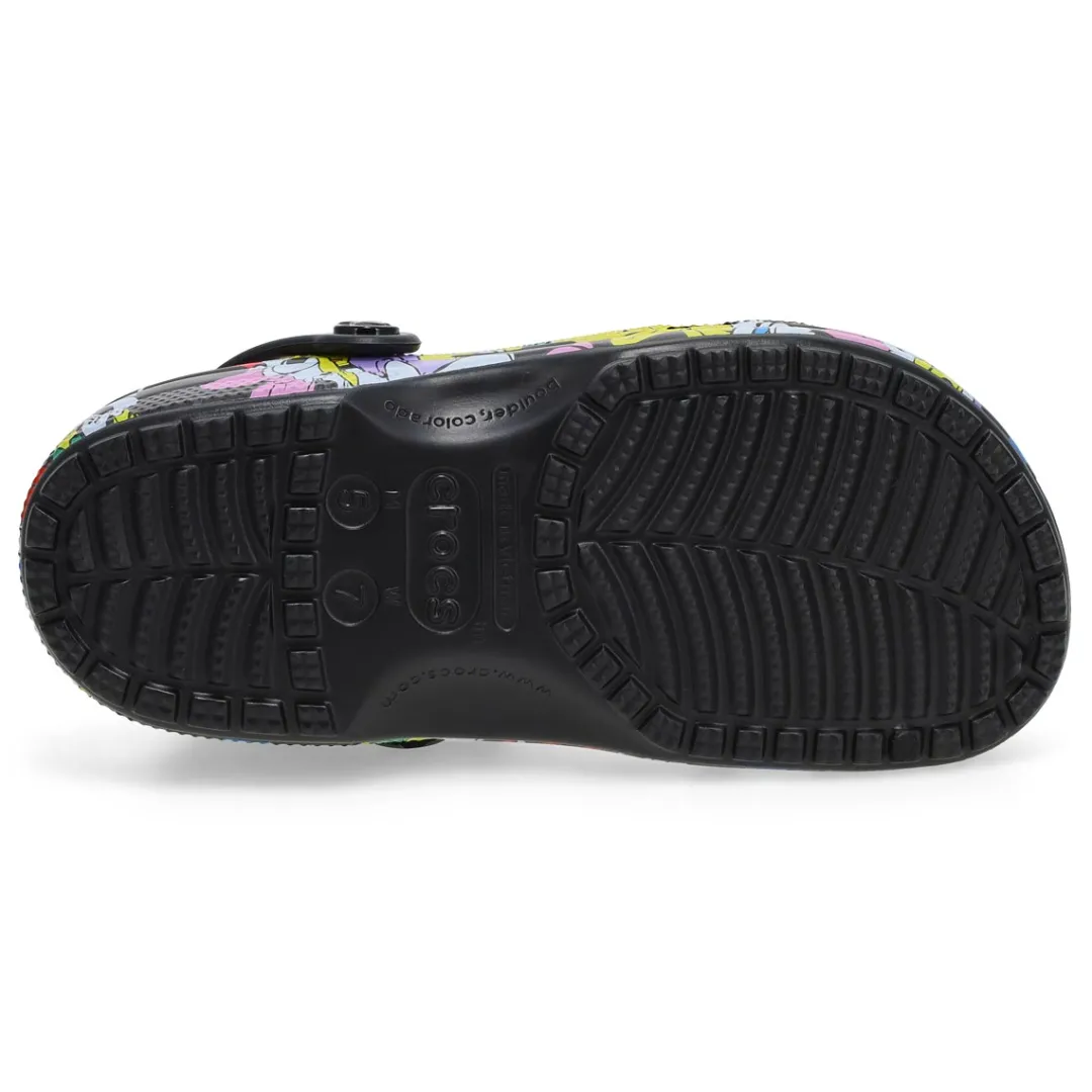 Bring out your playful side in this colorful version of the Classic Clog. A colorful graphic of Mickey and friends covers the clog and includes a collection of enamel Jibbitz charms featuring Pluto, Daisy, Goofy, and more! Plus, there’s more room to add your own personalization. They’re sure to put a smile on your face.