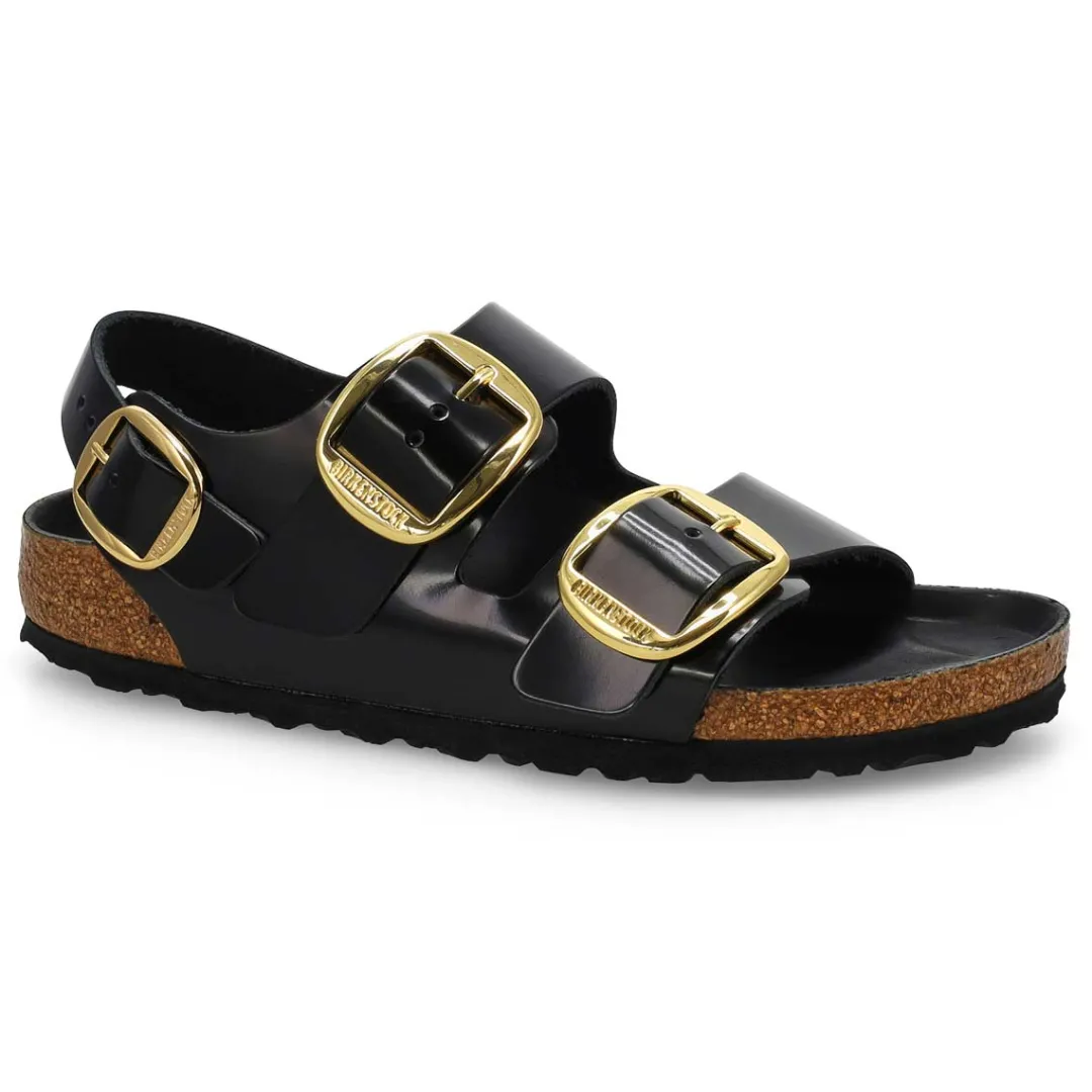 Make a statement with every step in the Milano Big Buckle 3 Strap sandal from Birkenstock. A bold take on a timeless classic, this elevated style features three wide straps with oversized buckles for a confident, fashion-forward look. Crafted for comfort and durability, it includes a contoured footbed that adapts to your stride and a secure backstrap for added stability. Whether you’re dressing up or down, the Milano Big Buckle brings sophisticated edge and everyday support to your wardrobe. Narrow Width . Made in Germany.