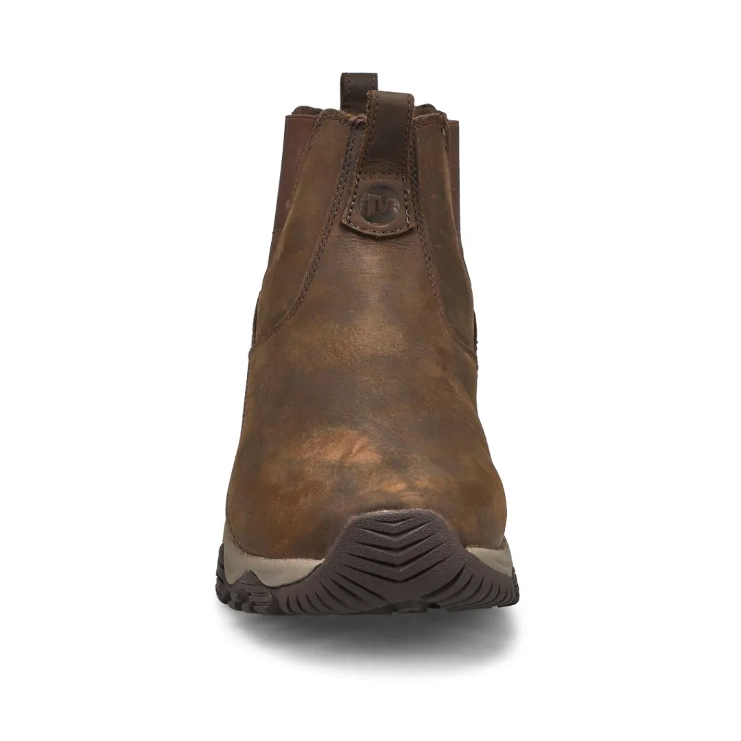 Get all-day comfort with the same out-of-the-box fit you expect from Moab Adventure wide brown boot from Merrell. This Chelsea delivers a lifestyle look, waterproofing, and traction you can trust. Full grain waterproof leather upper. M Select DRY seals out water and lets moisture escape so you stay dry. M Select WARM lightweight, low bulk 100 gram insulation keeps you comfortable. Wide Width