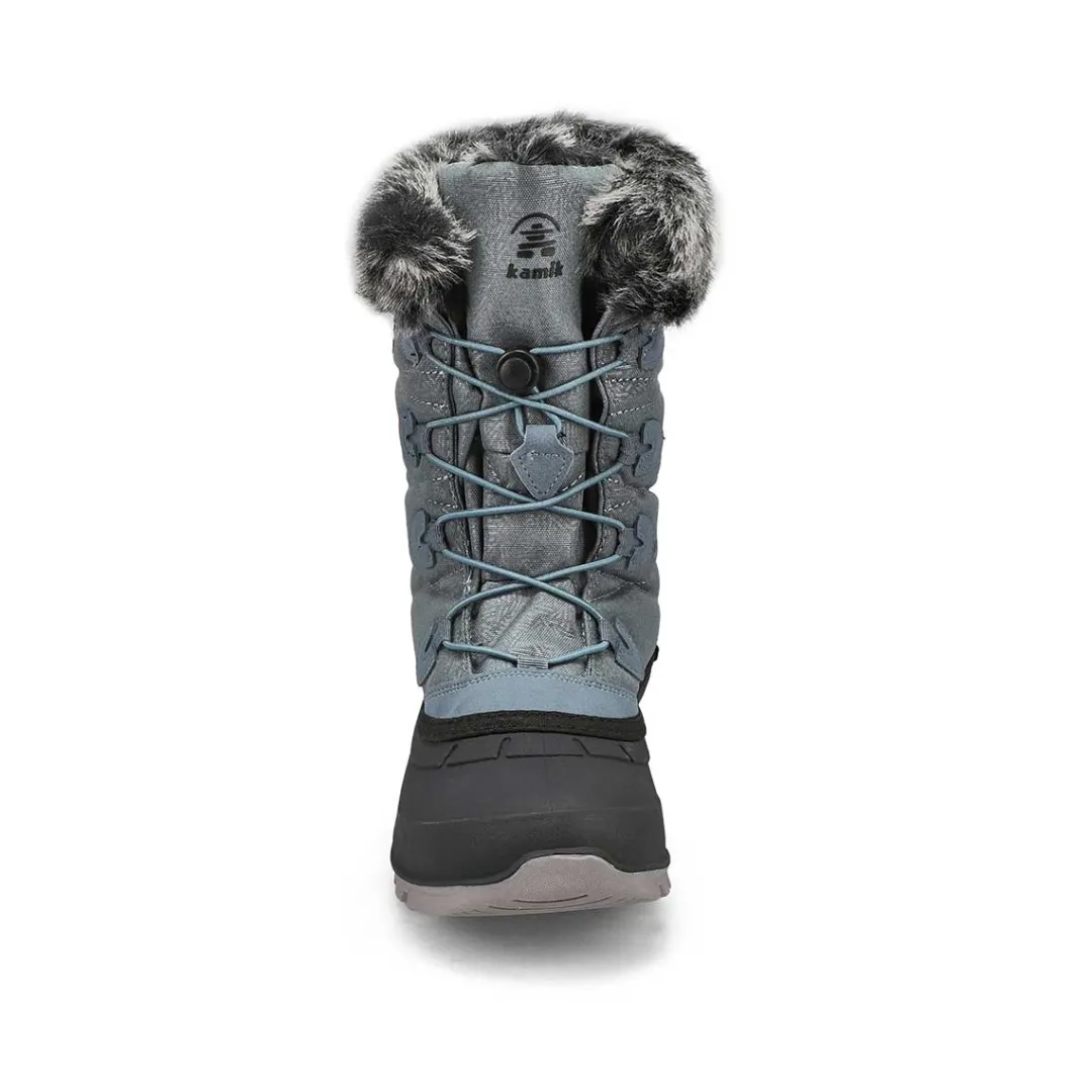 Stay dry on wet days in the Momentum 3 charcoal waterproof winter boots from Kamik. Featuring a waterproof upper and seam-sealed waterproof construction. Designed with 200B 3M Thinsulate insulation and moisture wicking faux shearling lining. Removable Kamik comfort EVA insole with antibacterial treatment. Waterproof and flexible synthetic rubber shell. ICEKISS dual-density synthetic rubber outsole.