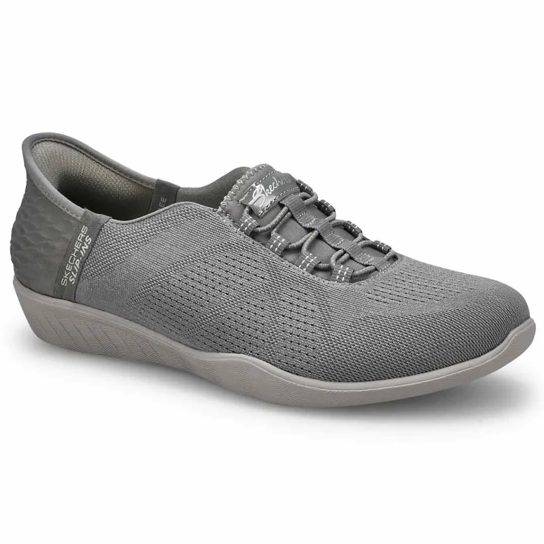 Step into effortless comfort with the Hands Free Slip-ins: Newbury St grey sneakers from Skechers. Featuring a Stretch Fit engineered knit upper with a stretch laced front and a cushioned Skechers Air-Cooled Memory Foam comfort insole. Stretch Fit design for sock-like comfort. Exclusive Heel Pillow holds your foot securely in place.