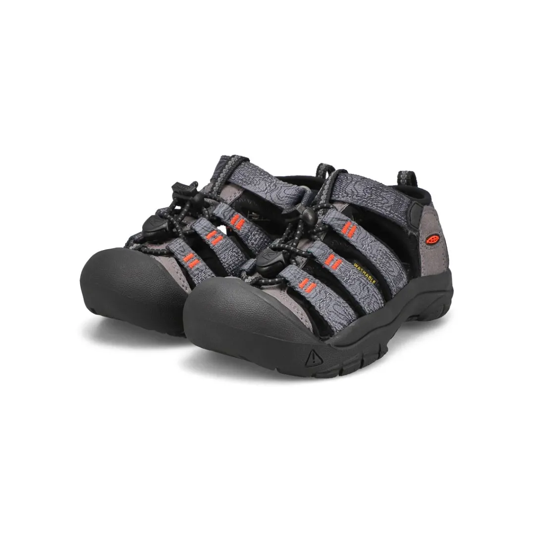 Order up some adventure with a side of water in the Newport H2 from Keen. Featuring a washable polyester webbing upper with Aegis Microbe Shield. Secure metatomical strap design with a quickdraw elastic cord lace. Patented toe protection with a metatomical EVA footbed. Compression molded EVA midsole. A non-marking rubber outsole with multi-direction lug pattern with razor siping.