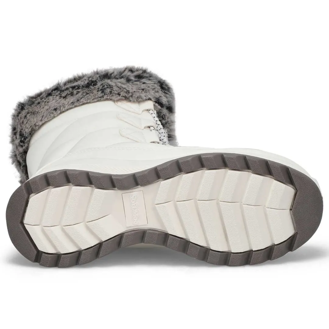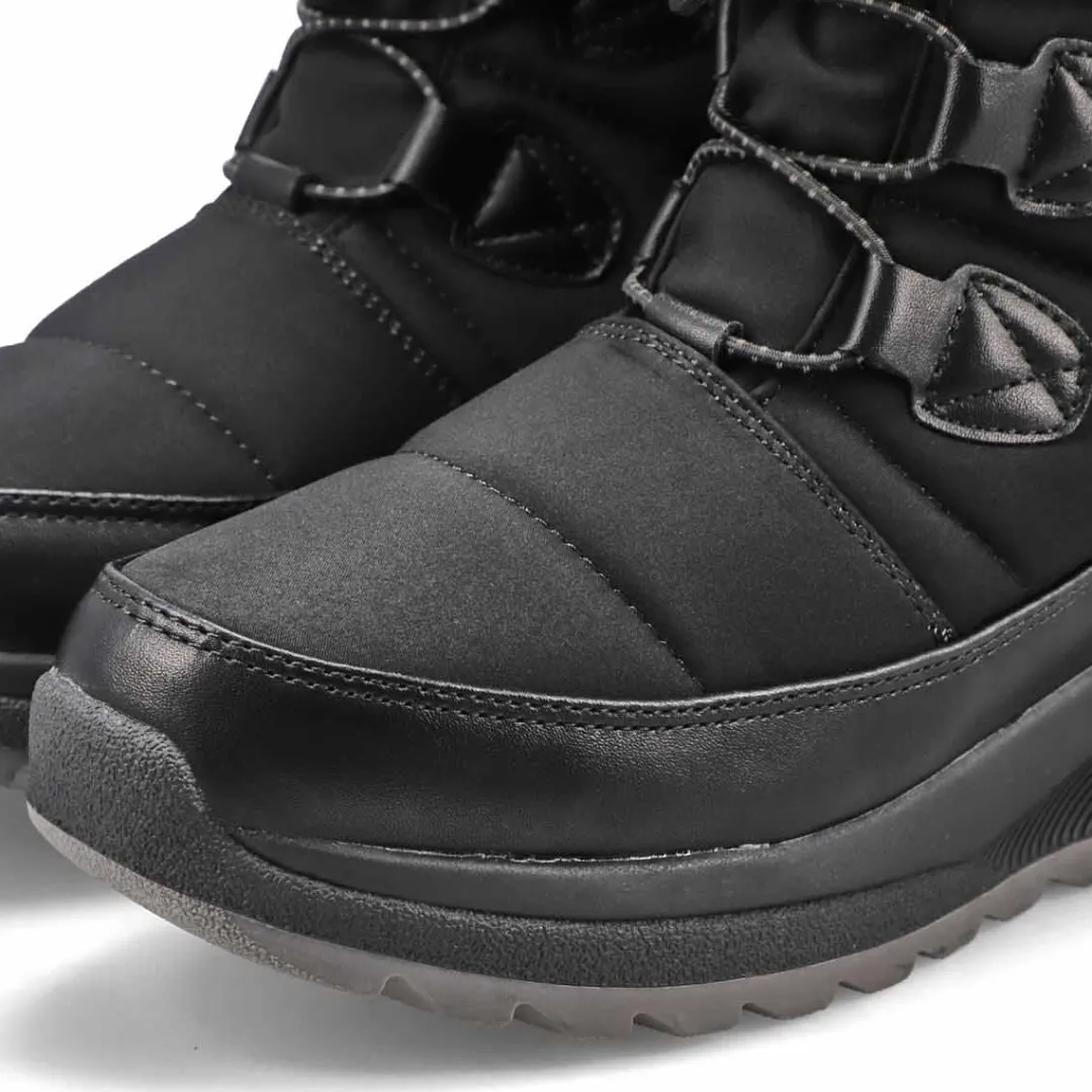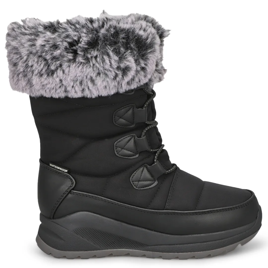 The Niobe charcoal waterproof boot from SoftMoc featurers a waterproof nylon upper with soft, faux fur collar and polar plush lining. Slip resistant traction outsole. Thinsulate insulation , built with lightweight construction in mind. You will want to make the Niobe charcoal waterproof winter boot part of your must-have list for this season!