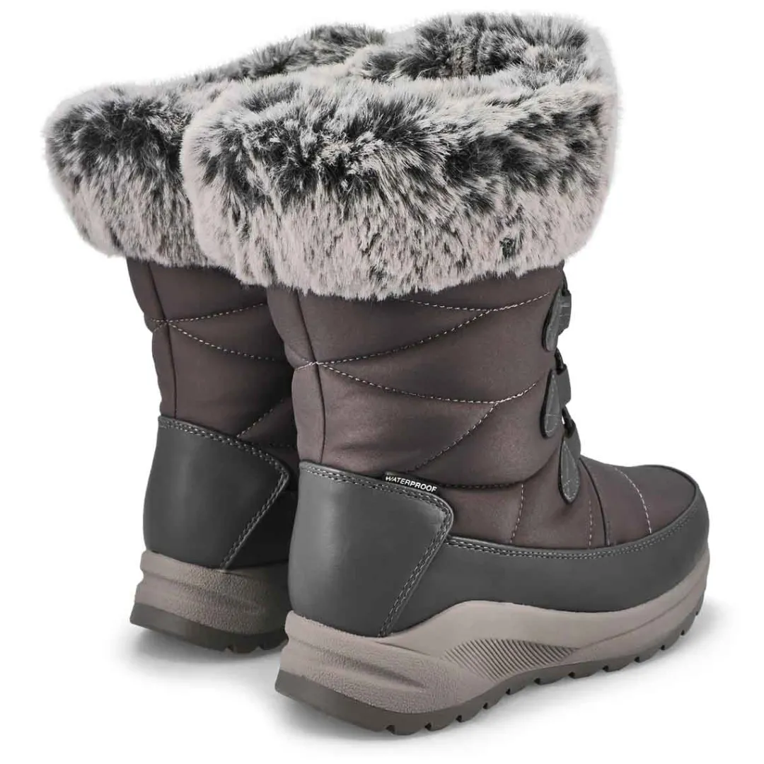 The Niobe black waterproof boot from SoftMoc featurers a waterproof nylon upper with soft, faux fur collar and polar plush lining. Slip resistant traction outsole. Thinsulate insulation , built with lightweight construction in mind. You will want to make the Niobe black waterproof winter boot part of your must-have list for this season!