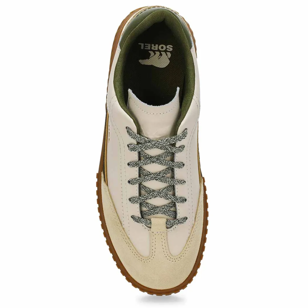 Add a retro vibe to any look with the Ona Ave T-Toe chalk/ utility green sneaker from Sorel. The chunky yet lightweight sole lifts you above city muck without weighing you down. Featuring a leather and suede upper with breathable textile lining. Removable EVA footbed with canvas topcover. Molded EVERTREAD rubber with LIVELYFOAM.