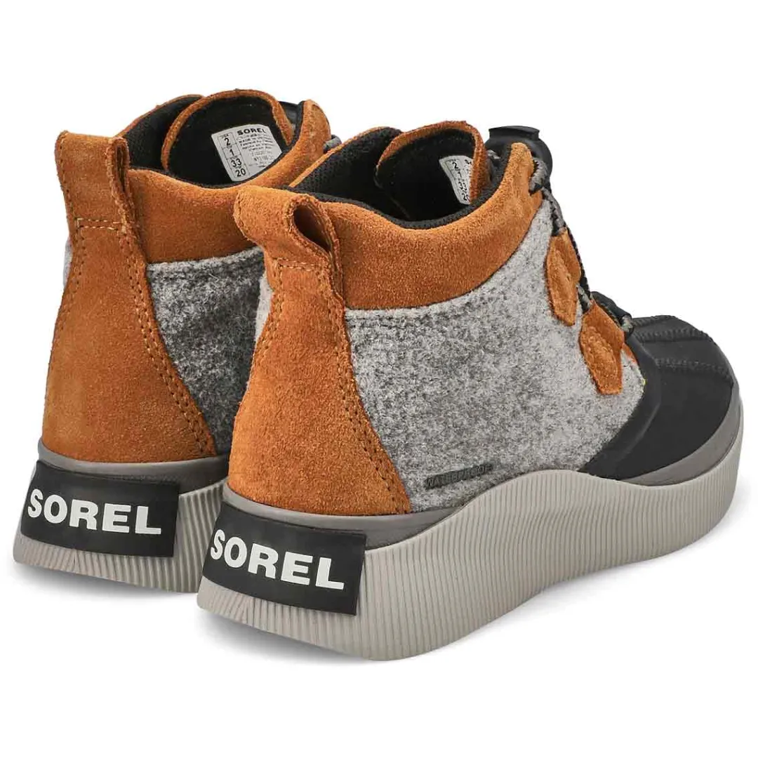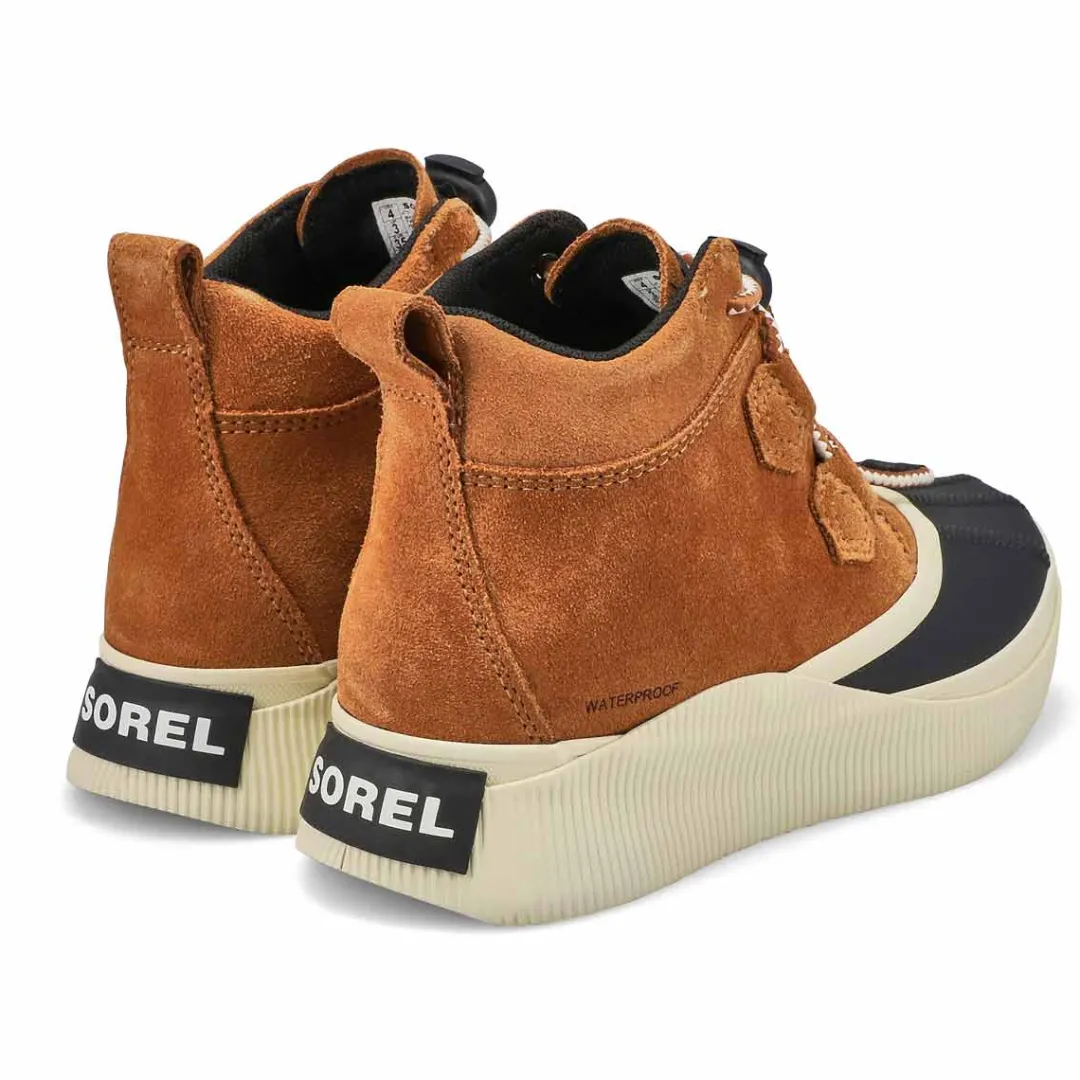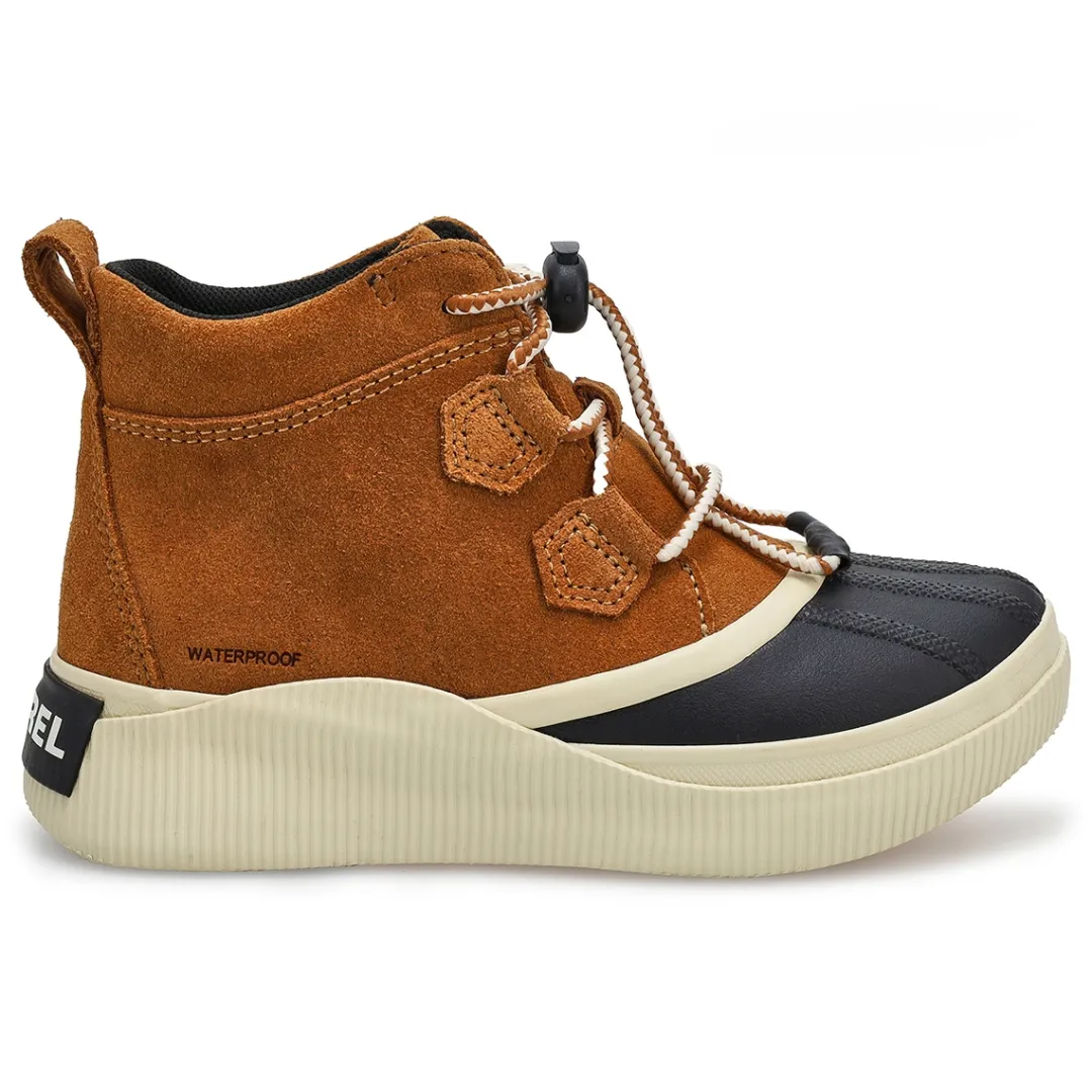 Boot up for fall and winter’s worst with the Out’N About IV waterproof boots from Sorel. Featuring a full grain leather and suede upper with seam-sealed construction. This boot has soft textile lining that helps guard against the cold elements. It delivers major coverage and coziness, with a molded Evertread rubber sole for excellent grip on icy terrain.