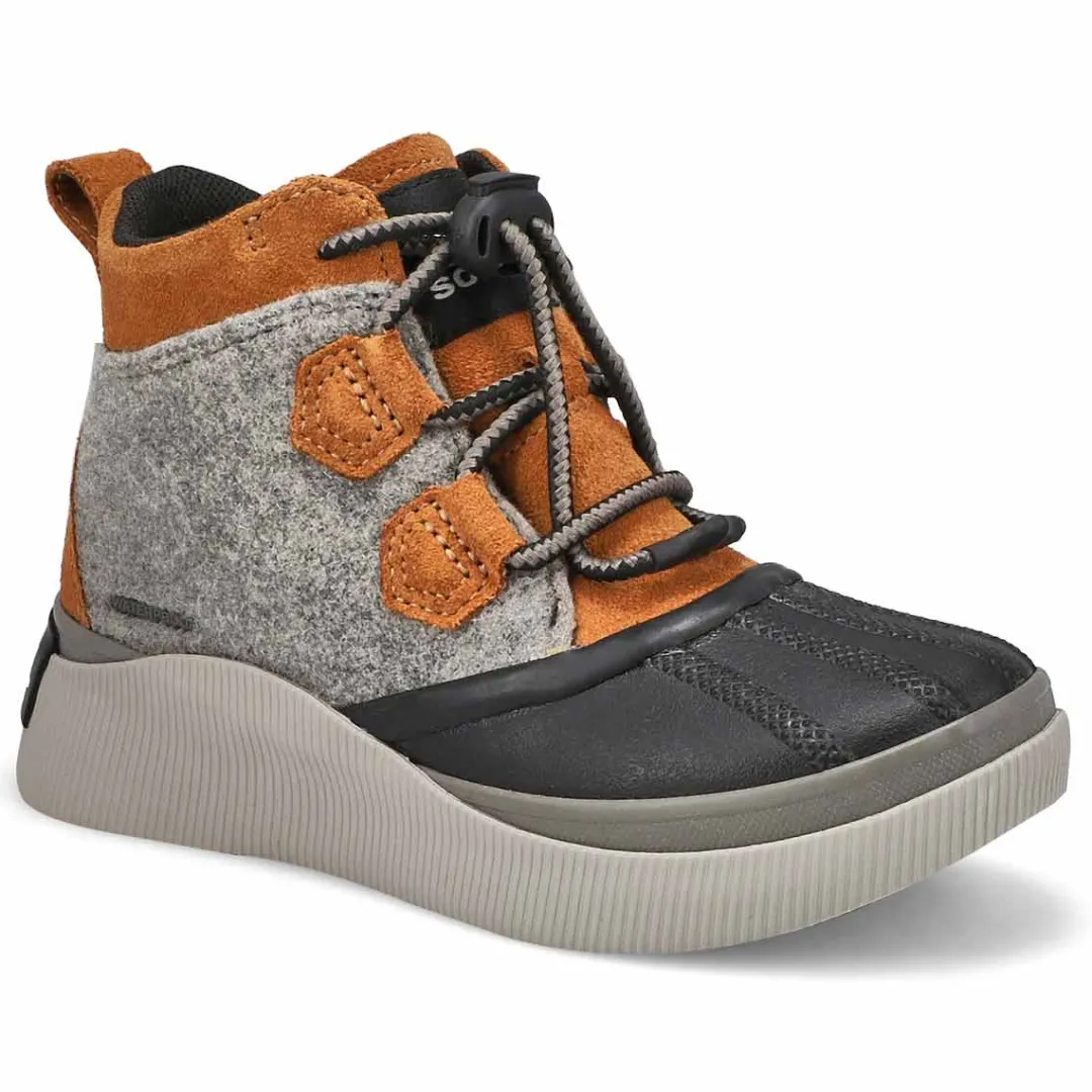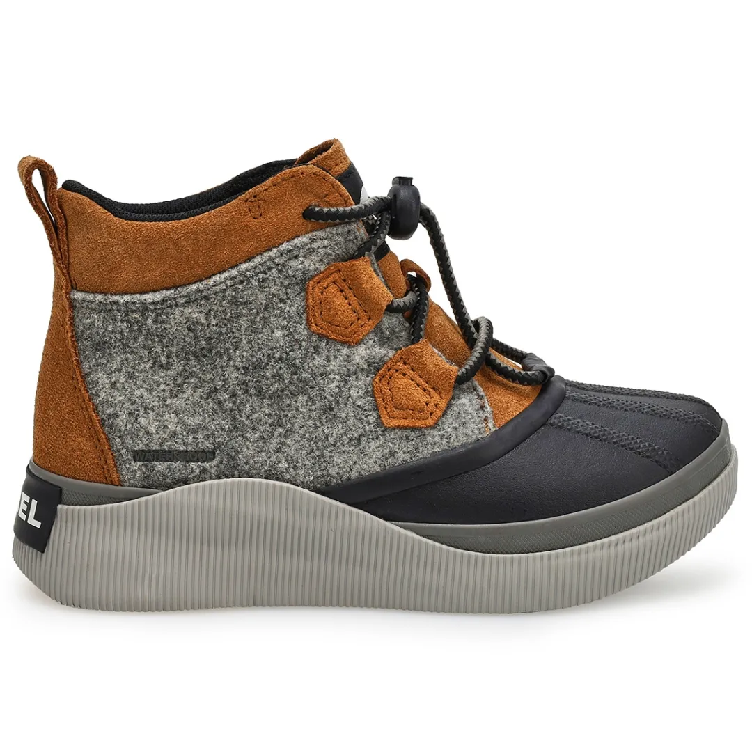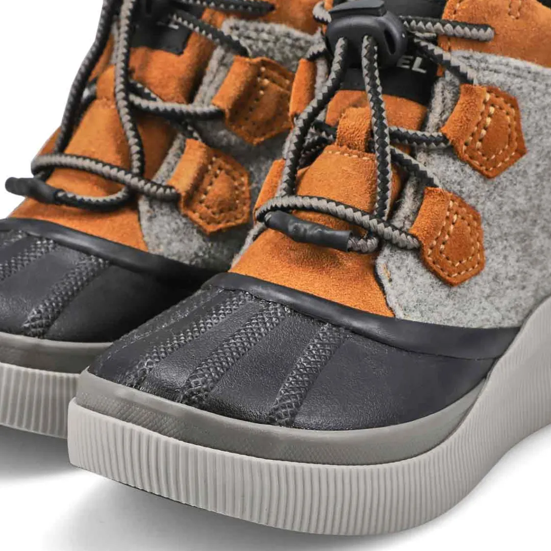 Boot up for fall and winter’s worst with the Out’N About IV waterproof boots from Sorel. Featuring a full grain leather and suede upper with seam-sealed construction. This boot has soft textile lining that helps guard against the cold elements. It delivers major coverage and coziness, with a molded Evertread rubber sole for excellent grip on icy terrain.