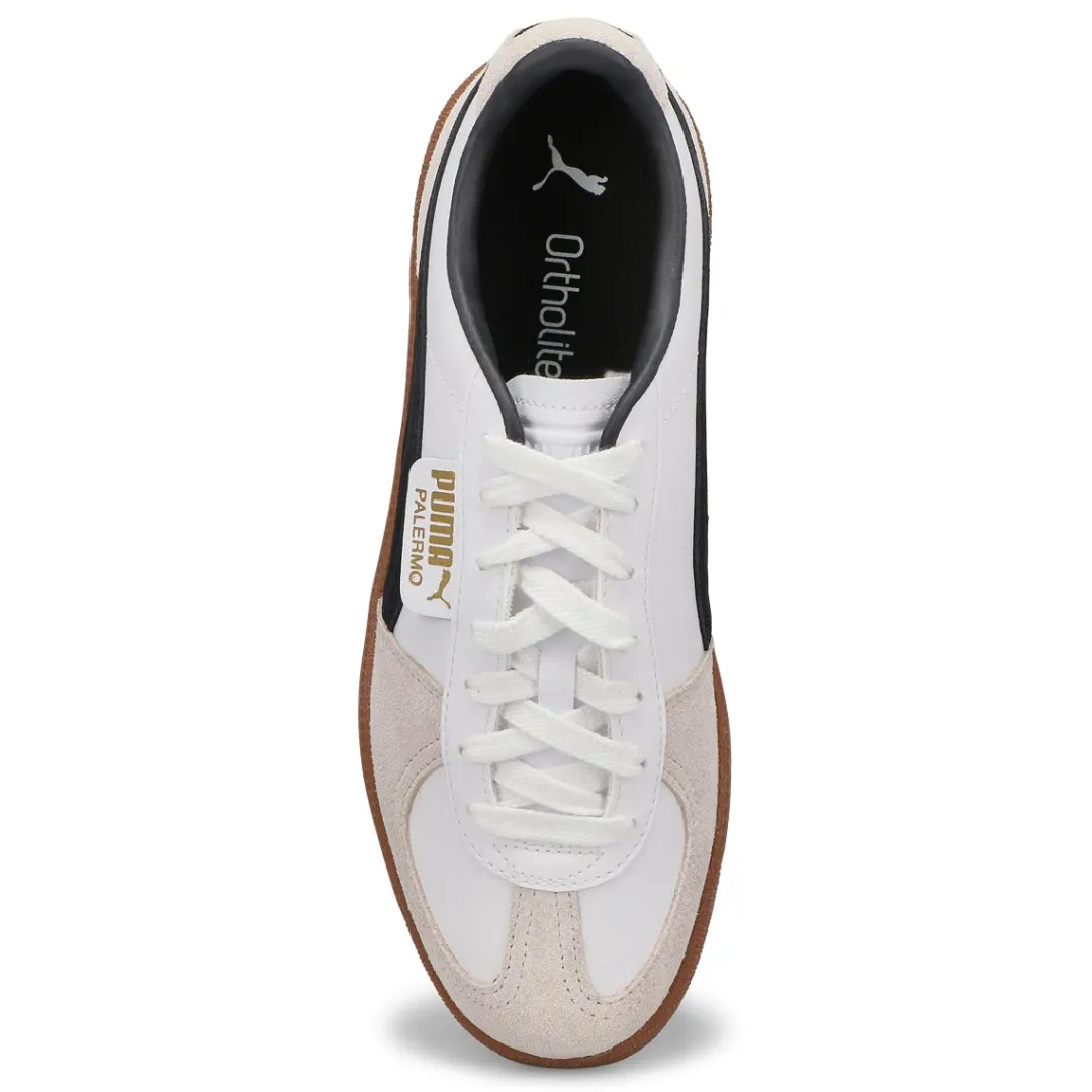 A terrace legend from Puma’s archives returns: The Palermo. The silhouette debuted back in the early ’80s, where it quickly became a staple among the terrace crowds in British soccer stadiums. Now, we’ve brought it back for the fans. Like the original, the Palermo is complete with its signature tag at the upper, a T-toe construction, and, of course, the classic gum sole. This version has a suede base and leather Formstrip with foil-printed PUMA branding.