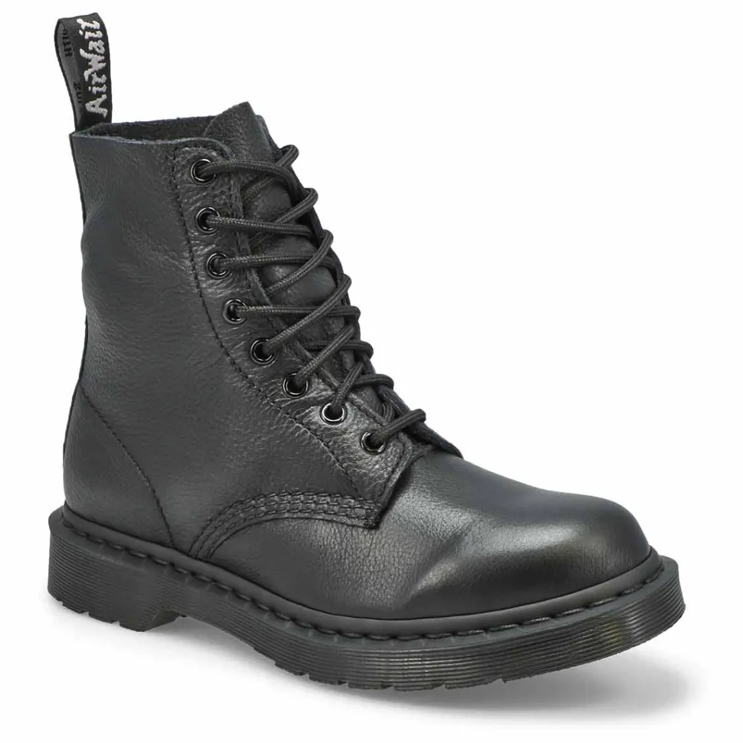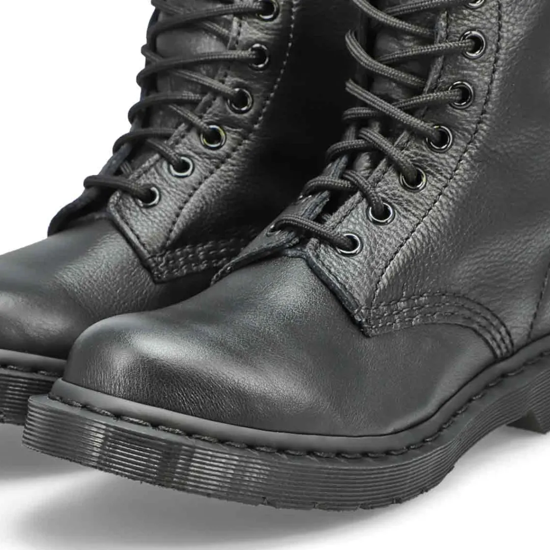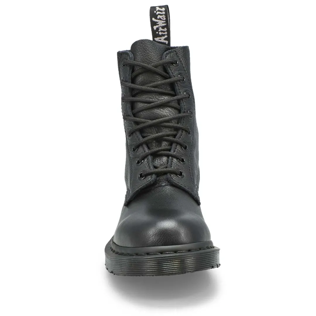 The 1460 Pascal Mono retains all the history and tough-girl durability of the original, iconic 8-eye — and all the DNA, like a scripted heel-loop, visible stitching and grooved edges on a air-cushioned oil and fat resistant sole. And now, it’s served up in monochromatic tip-to-toe black, in the super-soft, no-break-in Virginia leather.