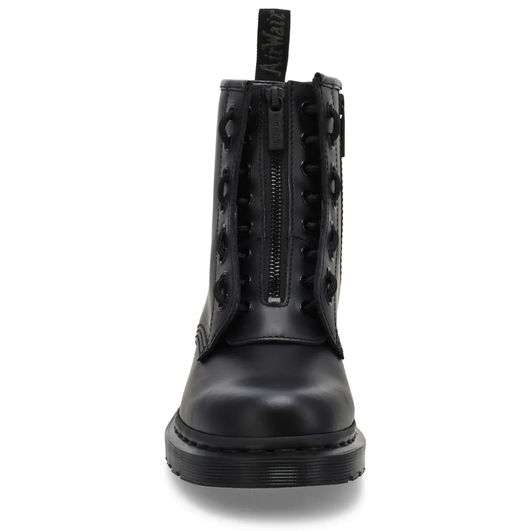 The evolution boot continues. This season, Dr. Martens’ reworked the upper for the Pascal Zip Mono 8-eye boot. Featuring a removable jungle zip attachment on the laces and gator-inspired quarters. Side zipper as well. Goodyear welt: construction the upper and sole are heat-sealed and sewn together with a z-welt stitch.