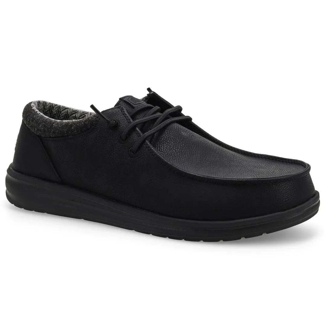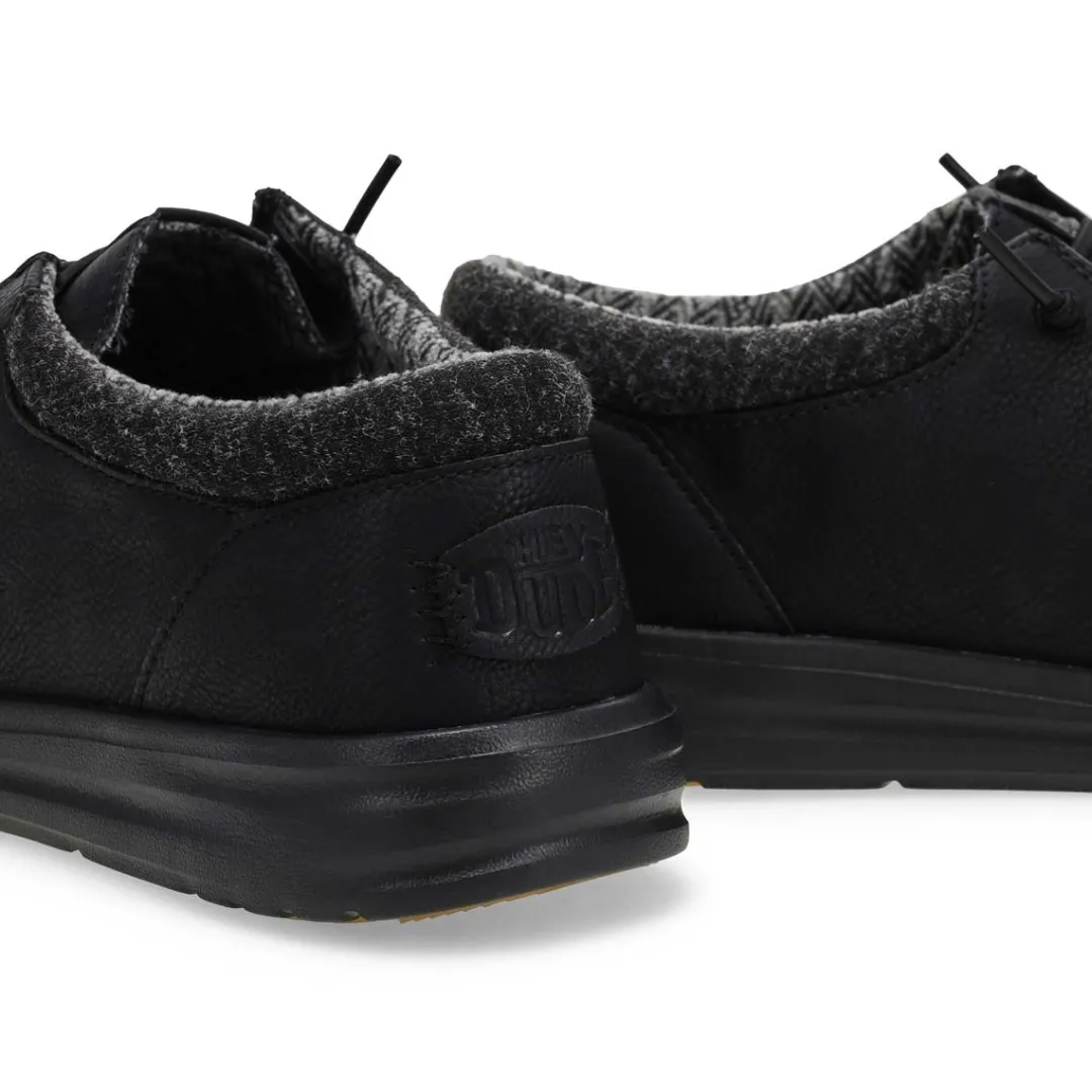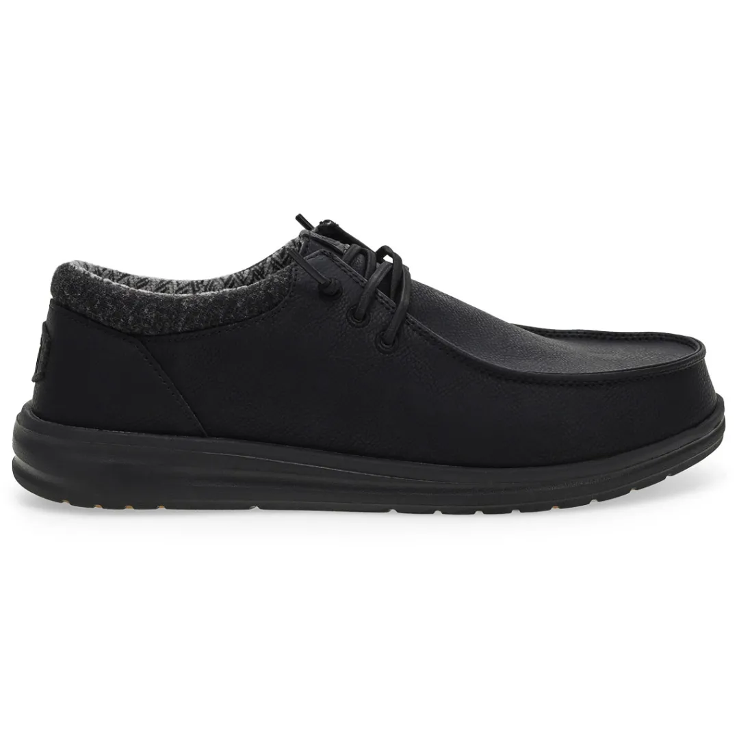 Everyday ease just became a breeze. The Paul Classic black casual shoe from HEYDUDE will become your new fall go-to with its soft faux-leather nubuck upper, heel, and herringbone-patterned lining for a little added detail. Comfort cushioned ankle collar. Easy-on system, makes this shoe travel ready! Comfort and style are one step away.