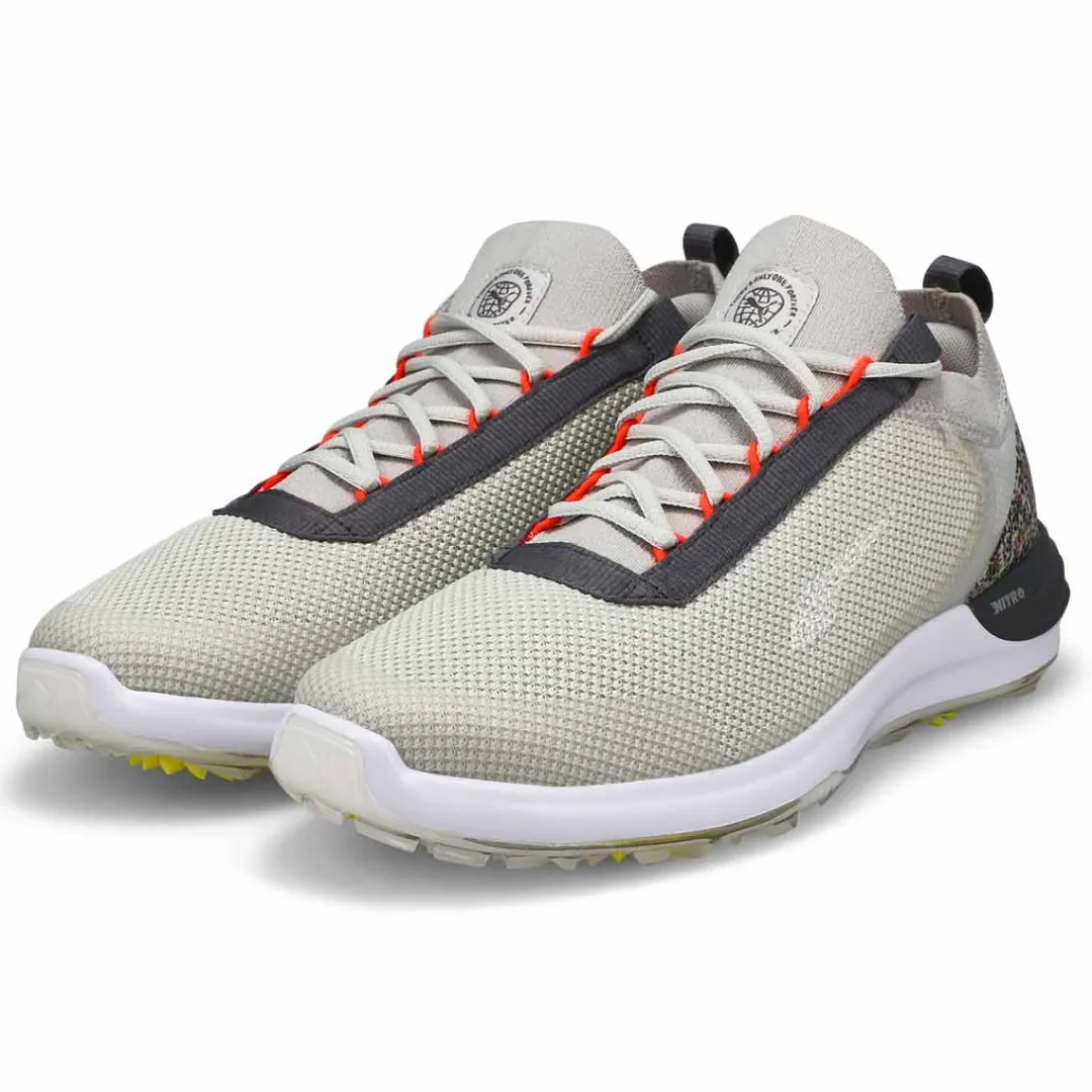 The Phantomcat Nitro Sport Golf Shoe from Puma brings golf cleats into the future with Flexspike technology. Puma’s PhantomCat Nitro golf shoe brings cleats into the future with FlexSpikes, offering exceptional gripping power. The NitroFoam midsole offers a balance between cushioning and energy return, improving performance and comfort. The footbed provides support and can be removed if more room is needed.