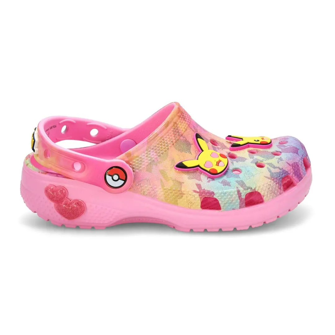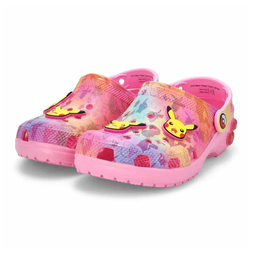 Calling young Trainers! The Pokémon Classic Clog is a fan-favorite silhouette, printed with fan-favorite Pikachu. The Pikachu Pink EVA Clog from Crocs has an all over shimmer finish with expression Jibbitz charms level up the look even more! Exclusive Pokémon Jibbitz Charms featuring Pikachu expressions. Easy to clean and quick to dry. Water-friendly and buoyant.