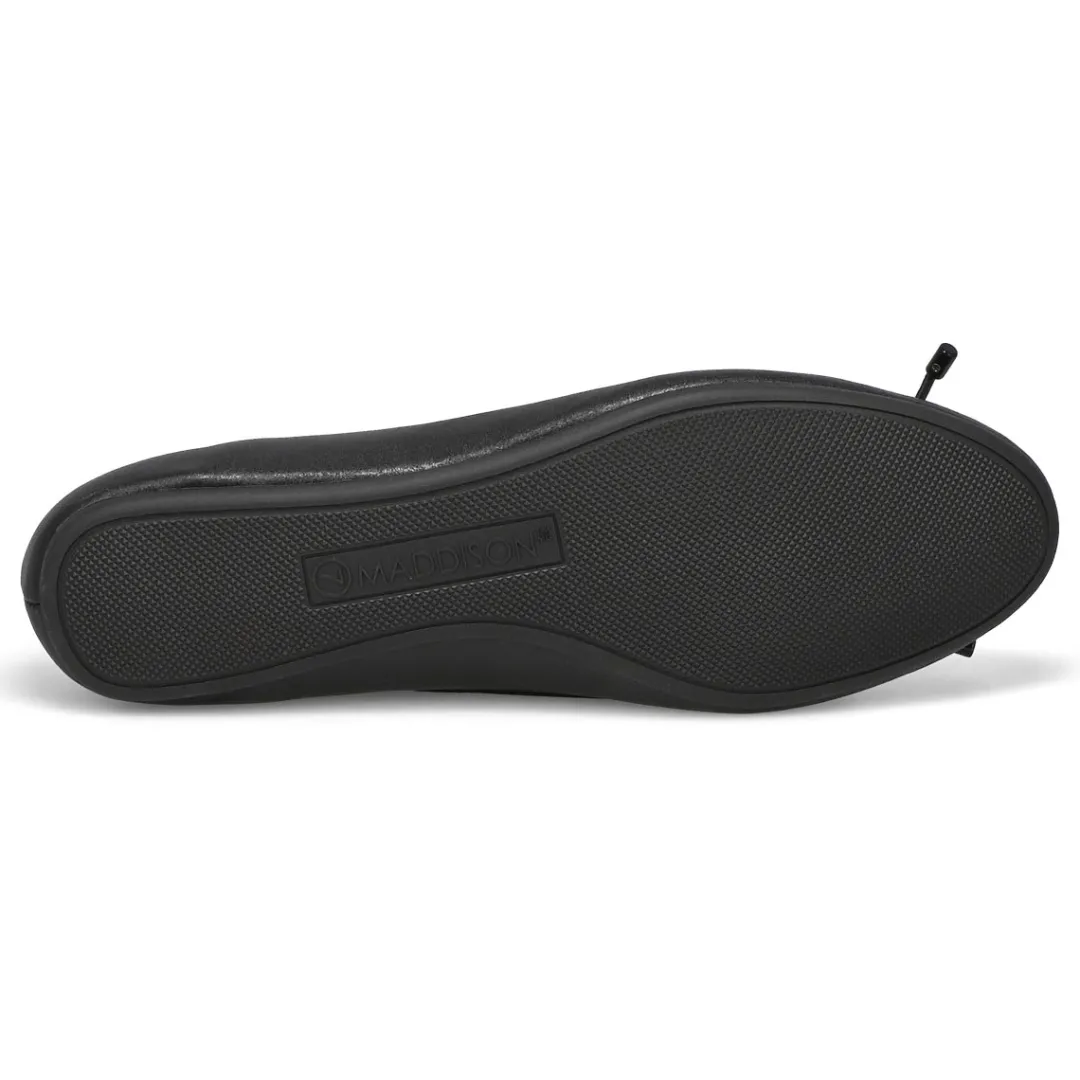 With the striking slender silhouette design, the Priscilla Ballerina flat from Maddison by SoftMoc are sure to bring a contemporary twist to your classic style. Featuring a genuine leather upper with a breathable lining. Cushioned Memory foam insole for all day comfort. A classic round toe styling with a durable TPR outsole.