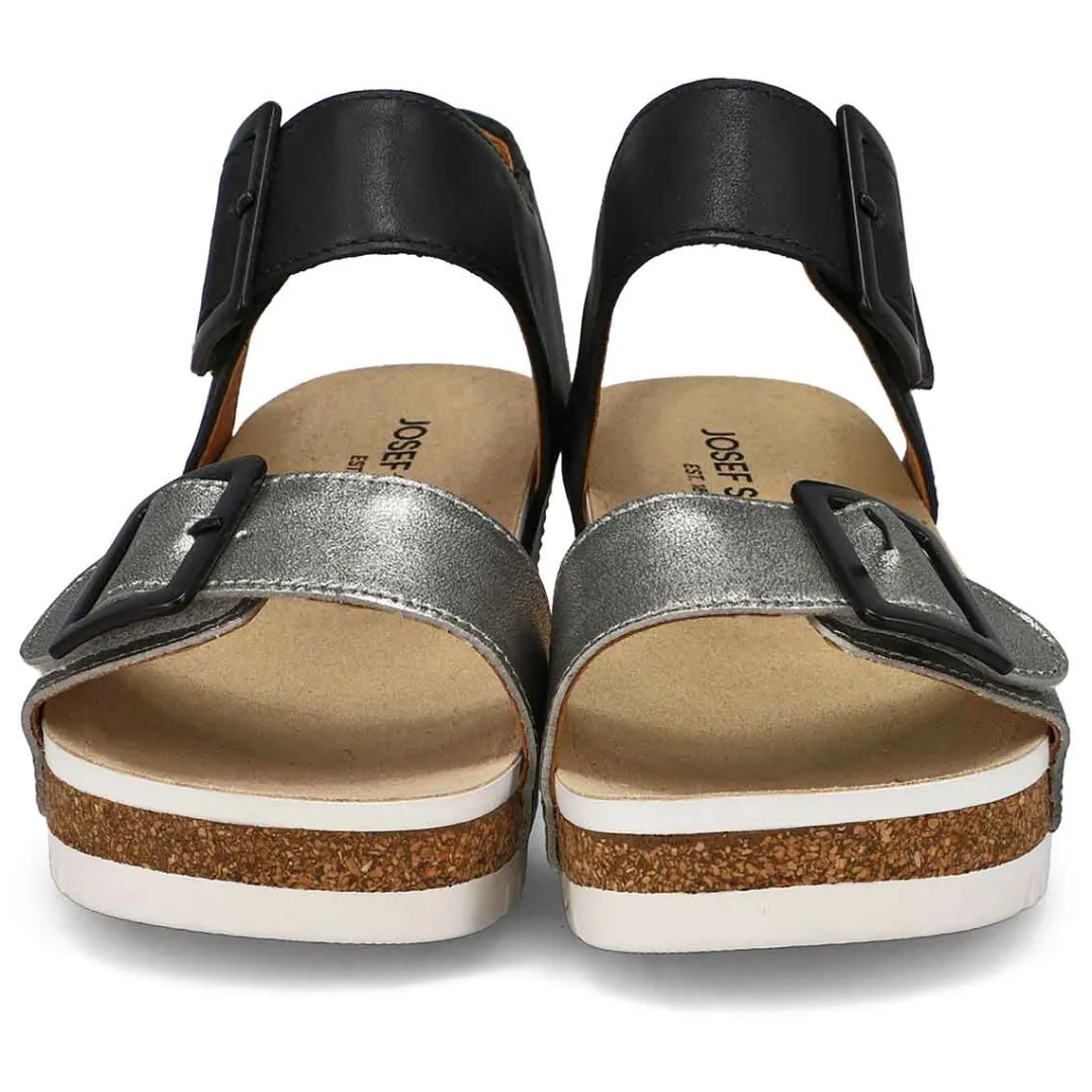 Tread lightly with this lightweight flexible wedge sandal! The women’s Quinn 02 Basalt Kombi sandal by Josef Seibel has three adjustable straps and a padded footbed, making these sandals feel comfy all day long. With a full-grain leather upper, and elastic strap over instep these cork / latex composite mid-sole sandals can be an every day item for your summer wardrobe.