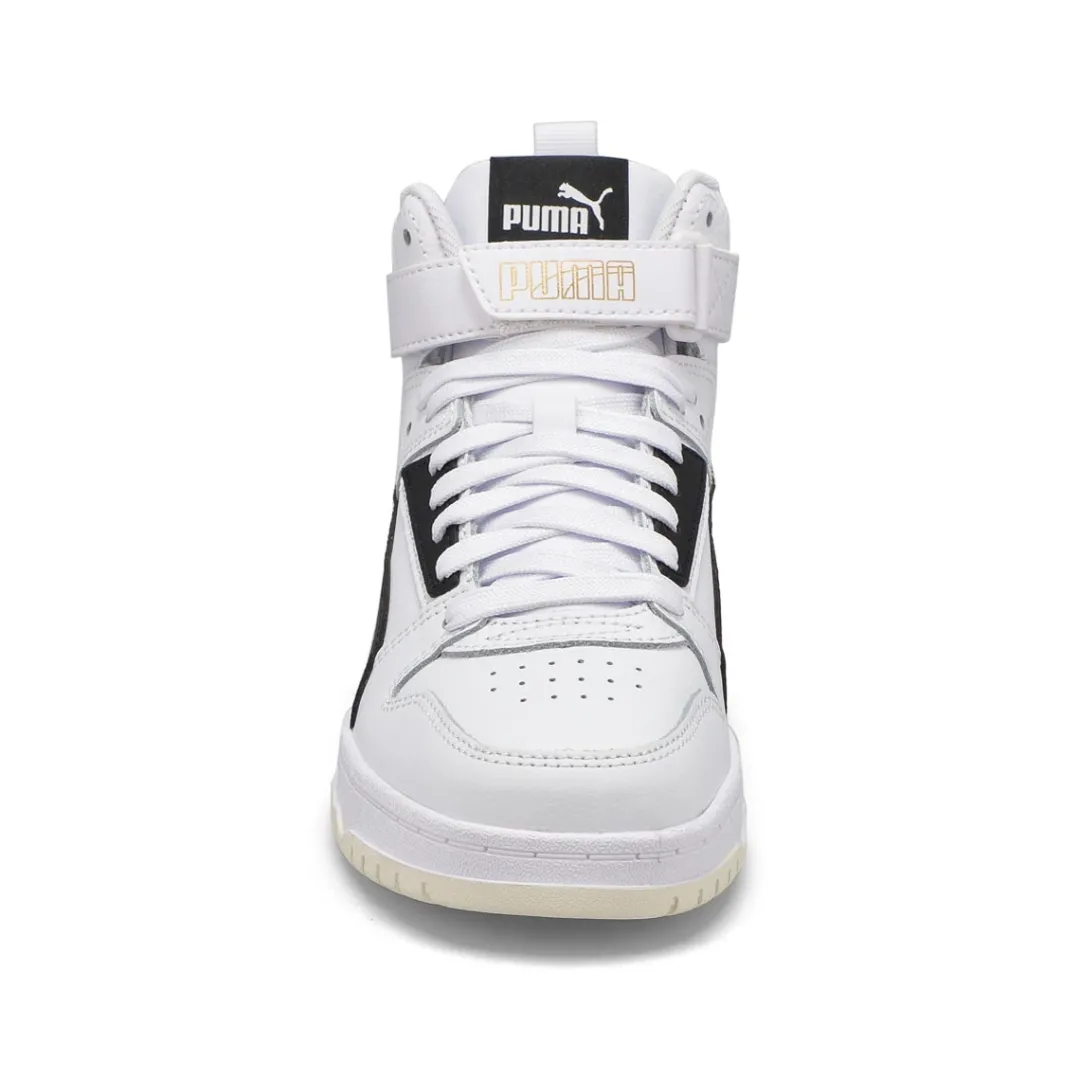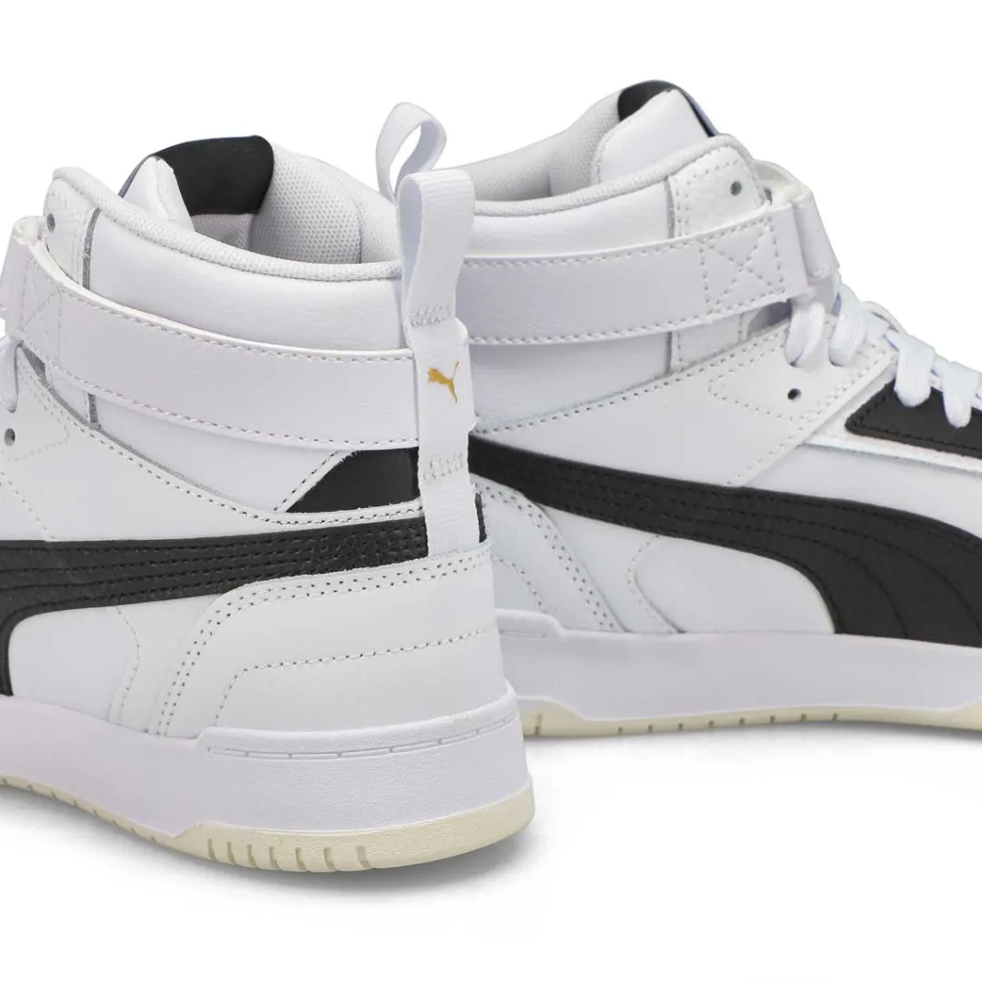 Drawing inspiration from basketball, classics and pop culture, these RBD Game High Top Puma sneakers are here to shake up the status quo. Whether on the court or hanging out with friends, these game-changers are easy-to-wear, complete with an upper featuring soft tumble leather material and a hook and loop closure on top. Walk through life in style and comfort thanks to the superior cushioning of the SoftFoam+ sockliner and the striking duo colors on the retro bottom design.