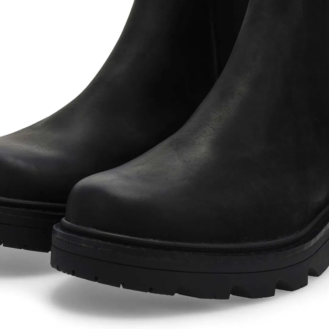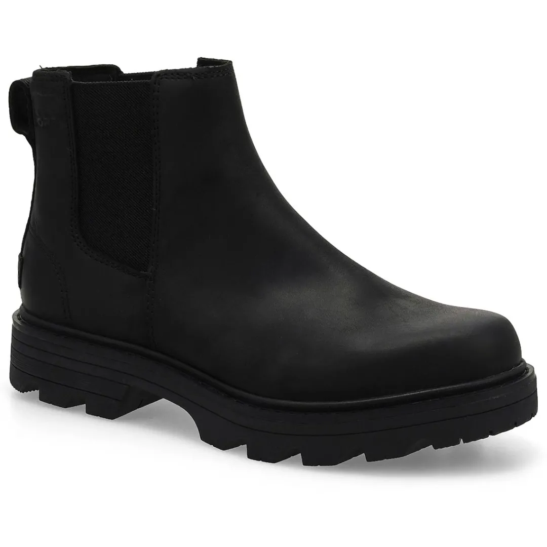 Pull the Revel Rd black/ black waterproof chelsea boot from Sorel on and take off. The rugged Revel Rd chelsea boot combines premium quality leather with waterproof construction, so you can wear them like you mean it. Waterproof seam-sealed construction. Footbed: Removable EVA footbed with canvas topcover. Midsole: Rubber welt construction with stitch detail.
