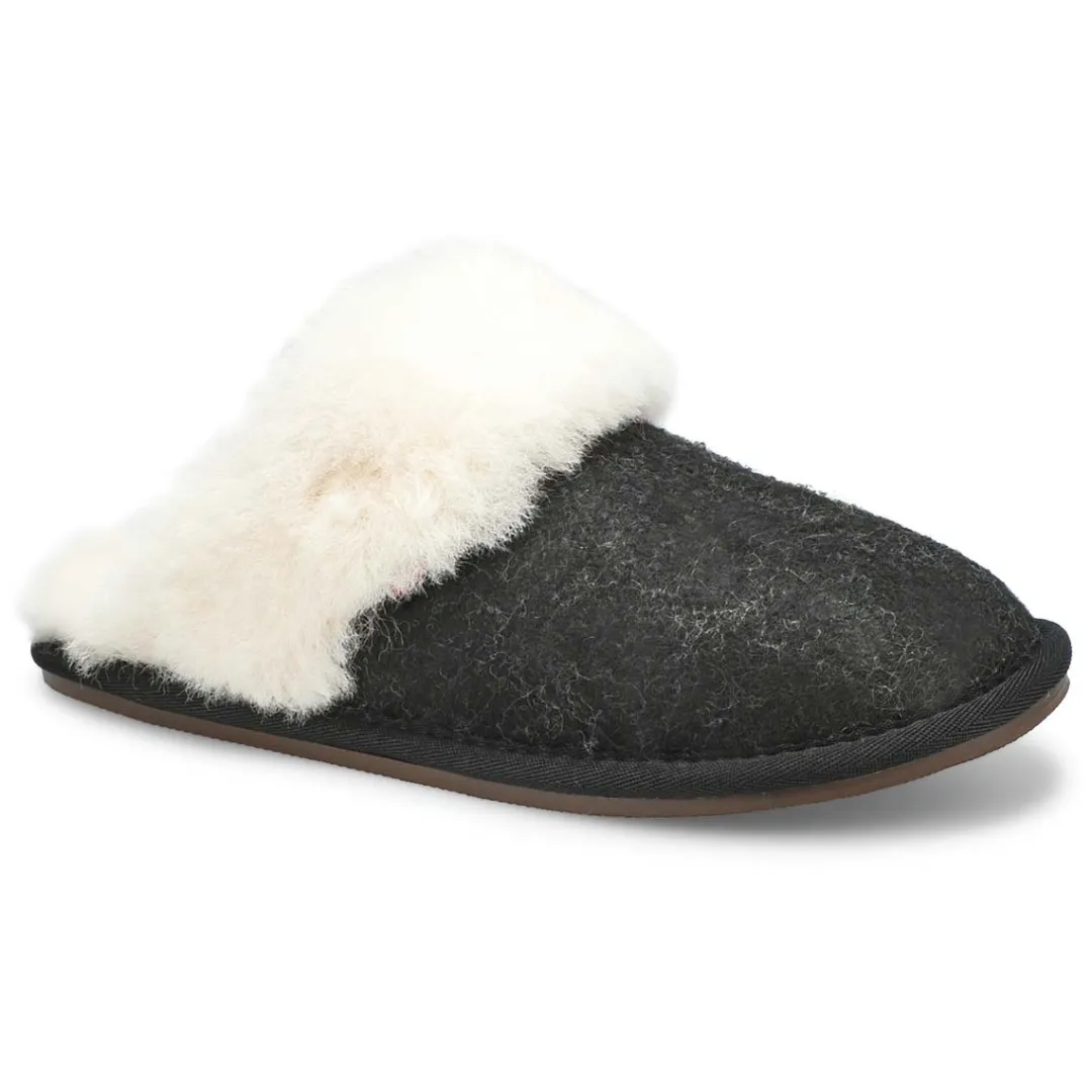 Warm and cozy. The Rihana 2 black open back slipper from SoftMoc is perfect for those cold nights and mornings. Featuring a beautiful felt upper with a memory footbed for added comfort. Soft lining surrounds the foot in comfort. The Rihana black open back slipper is designed with a durable TPR outsole.