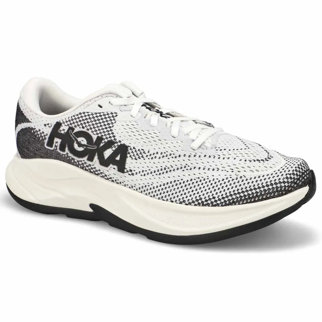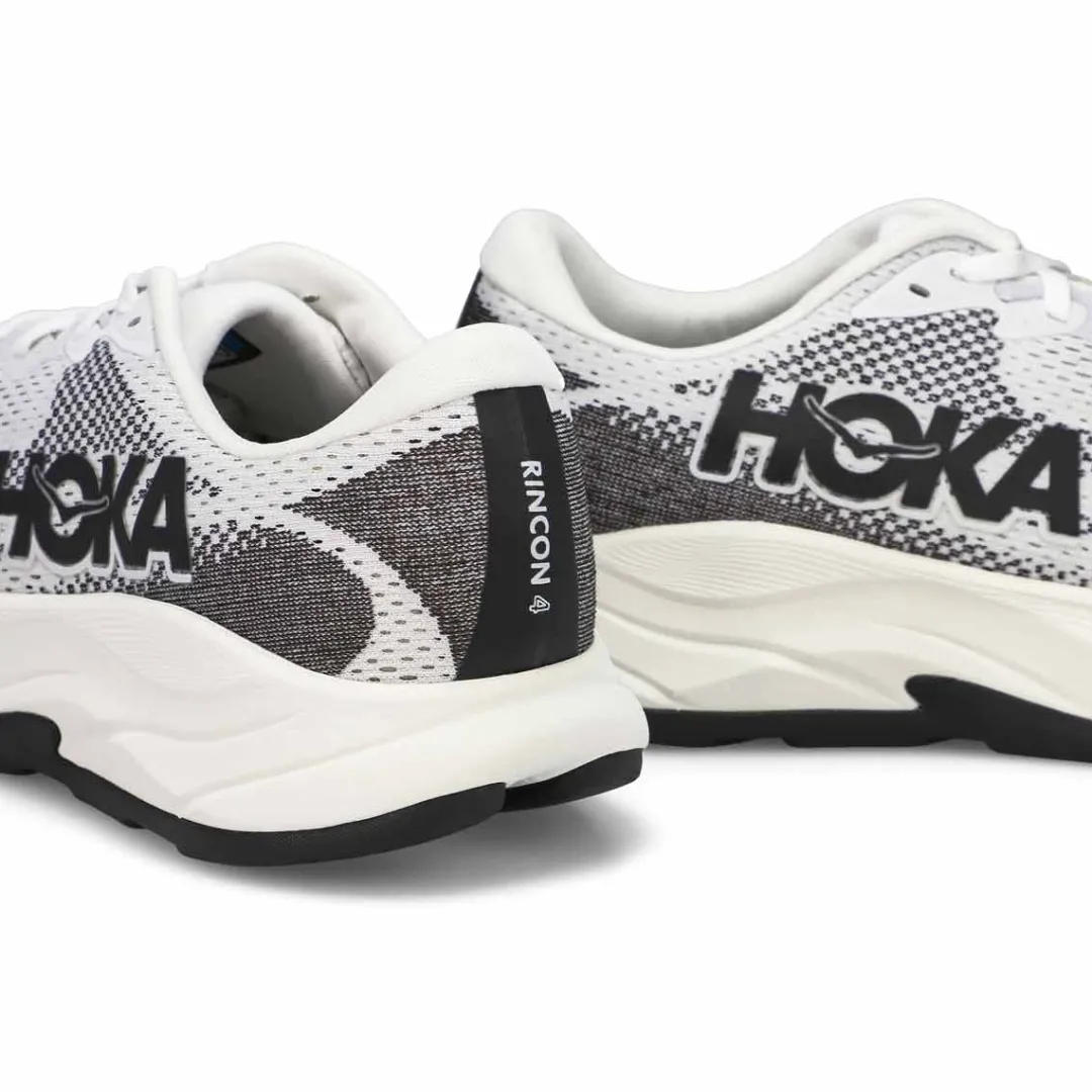 Renowned for its startling cushion-to-weight ratio, the Rincon 4 white/ black lace up Performance Runner from Hoka received a top-to-bottom makeover to ensure the uber-light softness it’s famous for lasts through even more miles. Upgraded foam provides better rebound while increasing longevity, and works together with rubberized EVA to make each step feel softer than the last. With a durable podular outsole design and a more foot-hugging fit than before, this daily trainer is engineered for a longer life without weighing you down. Heel-to-toe Drop: 5mm.