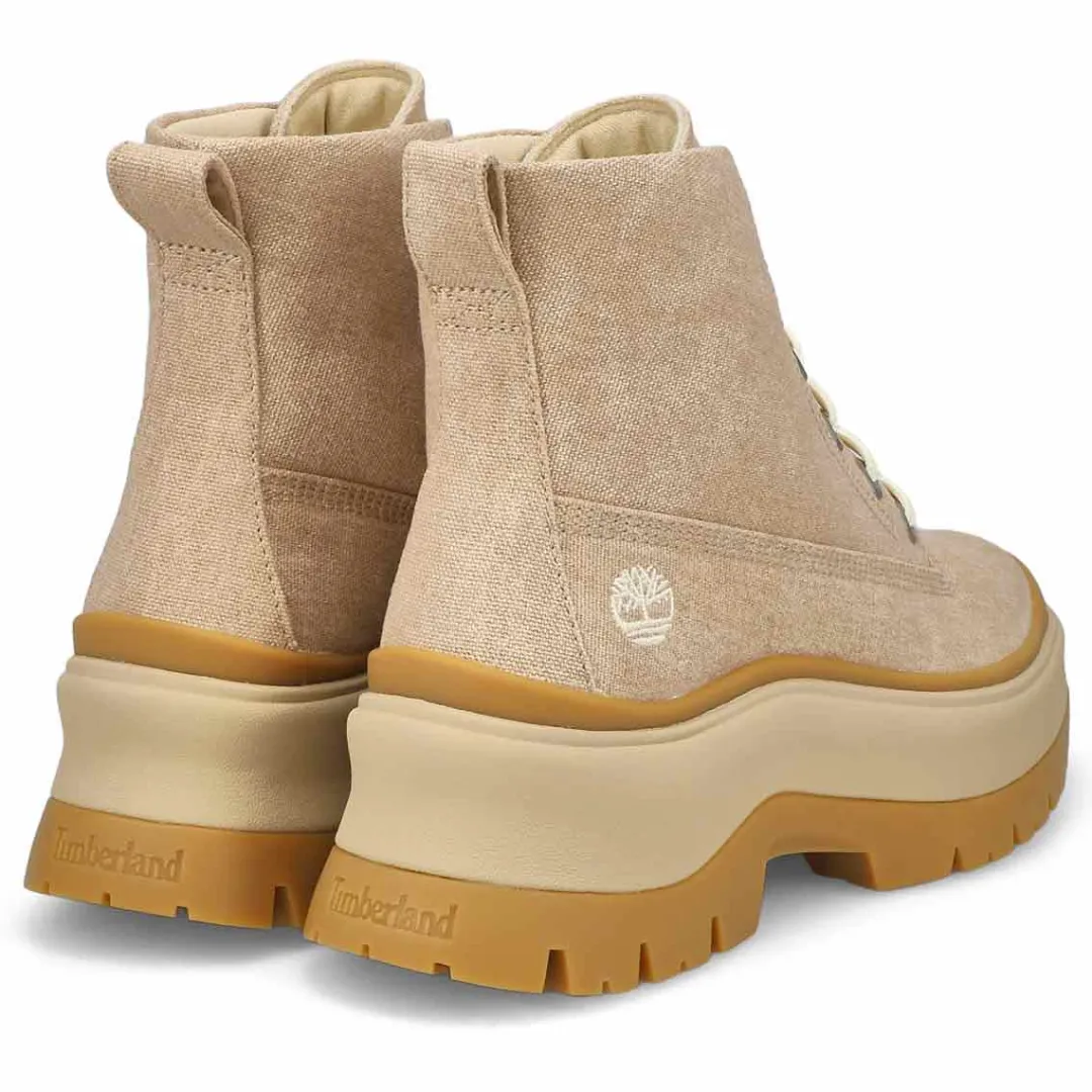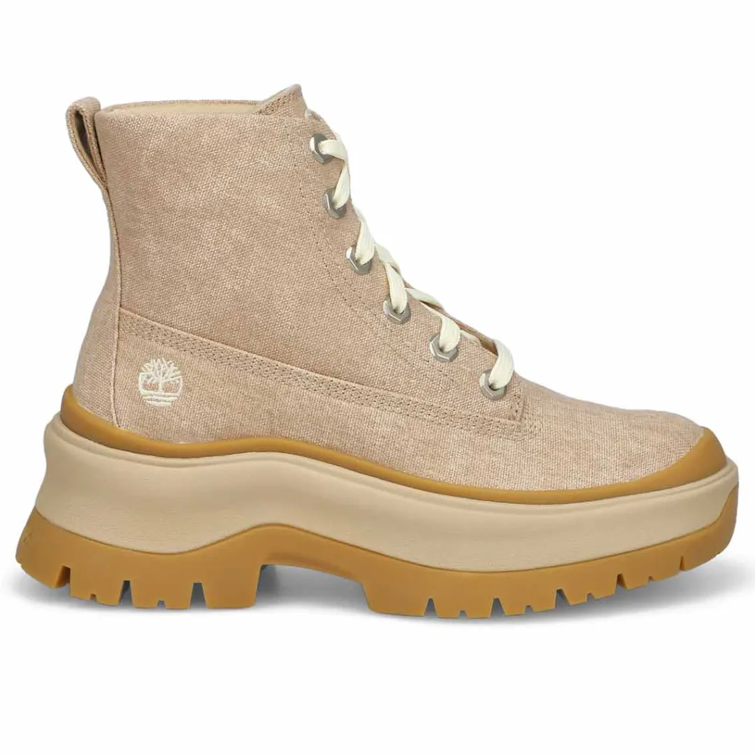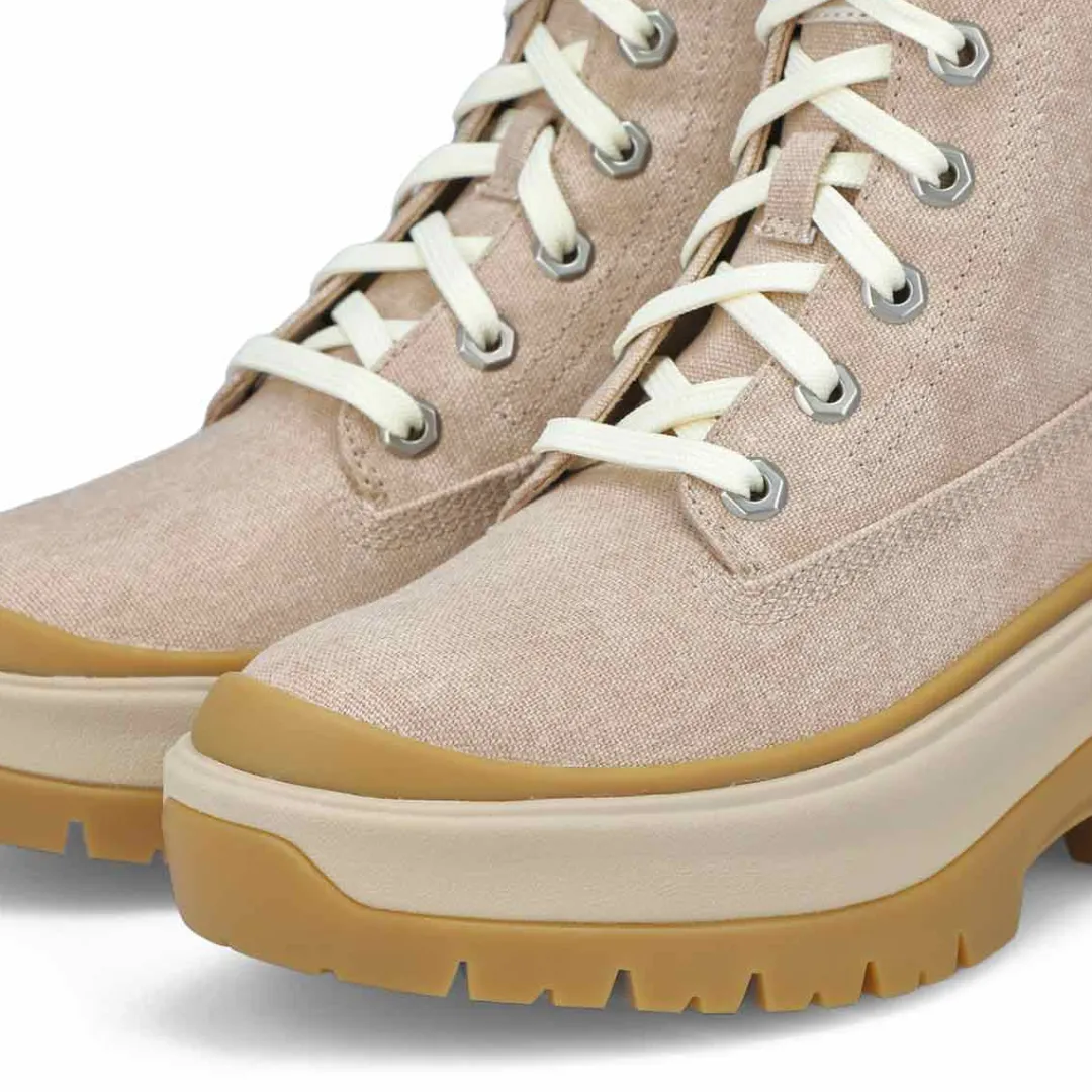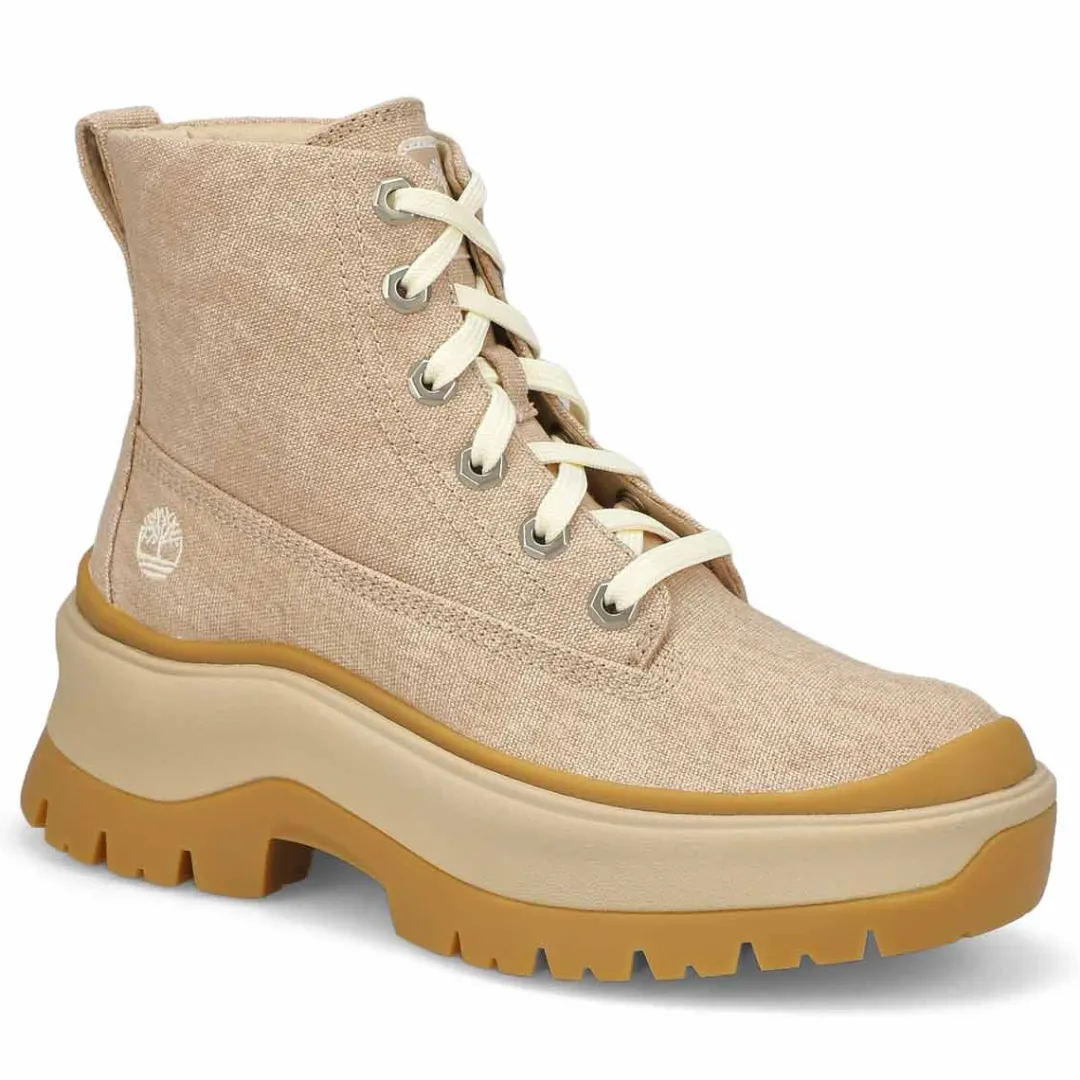Be ready for the trail with the Roxie Lane Mid Lace Up Boot from Timberland. Enjoy the flexibility of a canvas upper with the durability of grip of the TIMBERGRIP lug outsole. And with the TimberCush Comfort System and the OrthoLite Impressions memory foam footbed, you can go all day on that trail in comfort.