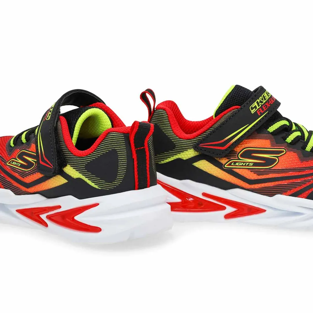 Rev up their day with the bright fun of the S-Lights: Flex-Glow Ultra Black/Red/Yellow sneakers from Skechers. This colorful sneaker features an ombre mesh upper with synthetic overlays, fixed stretch laces and Adaptive Closure, plus a tech-pieced light-up midsole. Easy-on sneaker with fixed stretch-laces and adjustable instep strap.