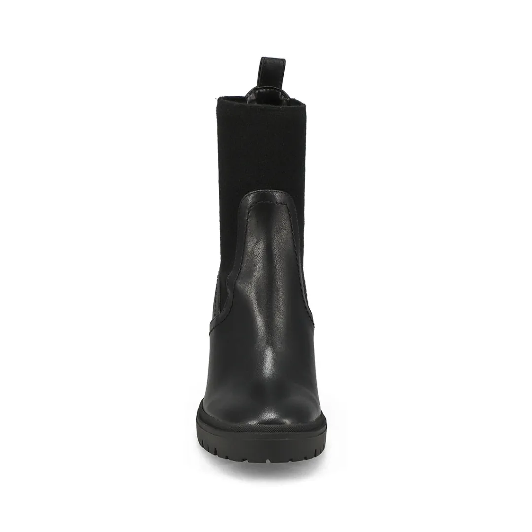 Experience sophisticated style with comfort in the Steve Madden Sahly boots. These heeled Chelsea boots boast a blend of manmade upper and textile lining for comfort and support. These pull-up boots have a high heel that not only adds a touch of elegance to any outfit, from skirts to pants and everything inbetween. These round-toe boots have lugged synthetic outsole for secure footing.