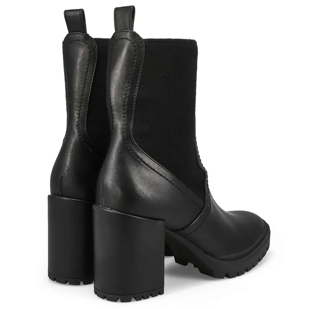 Experience sophisticated style with comfort in the Steve Madden Sahly boots. These heeled Chelsea boots boast a blend of manmade upper and textile lining for comfort and support. These pull-up boots have a high heel that not only adds a touch of elegance to any outfit, from skirts to pants and everything inbetween. These round-toe boots have lugged synthetic outsole for secure footing.