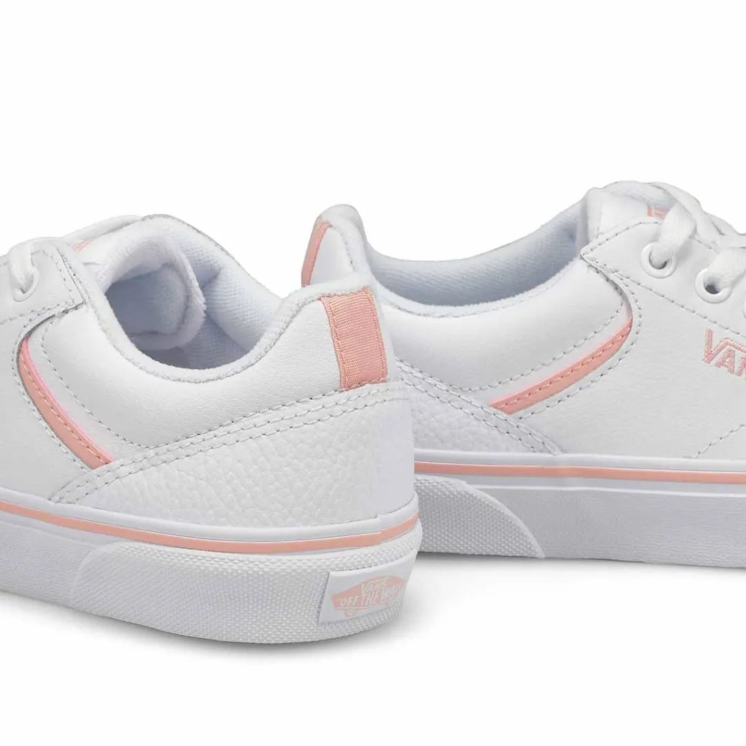 Show the world you know what’s up with the rebel style of the Seldan black/ white lace up sneakers from Vans. You can’t go wrong with a classic canvas sneaker and the Seldan from Vans is a versatile choice. This low-top will pair with nearly any casual outfit! This style combines the original and now iconic Vans low top style with sturdy uppers, metal eyelets, and signature rubber waffle outsoles.