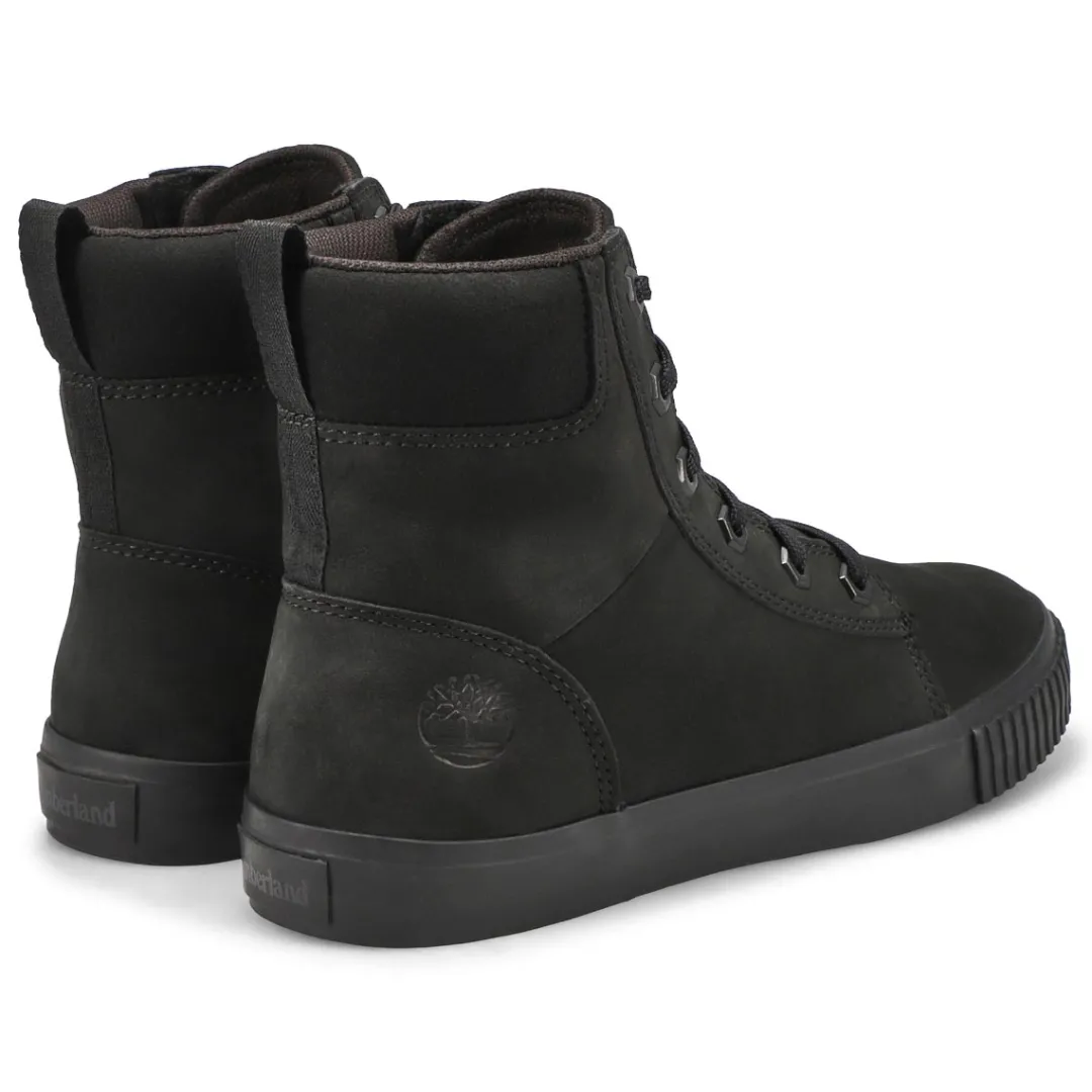 The Skyla Bay 6″ black boot from Timberland are great for everything from a walk in the woods to the workplace. Made with environmentally responsible materials.are made with responsibly sourced materials. ReBOTL fabric lining made with at least 40% recycled plastic. The Skyla Bay is designed with a footbed made of EVA-blend foam for high-rebound cushioning.